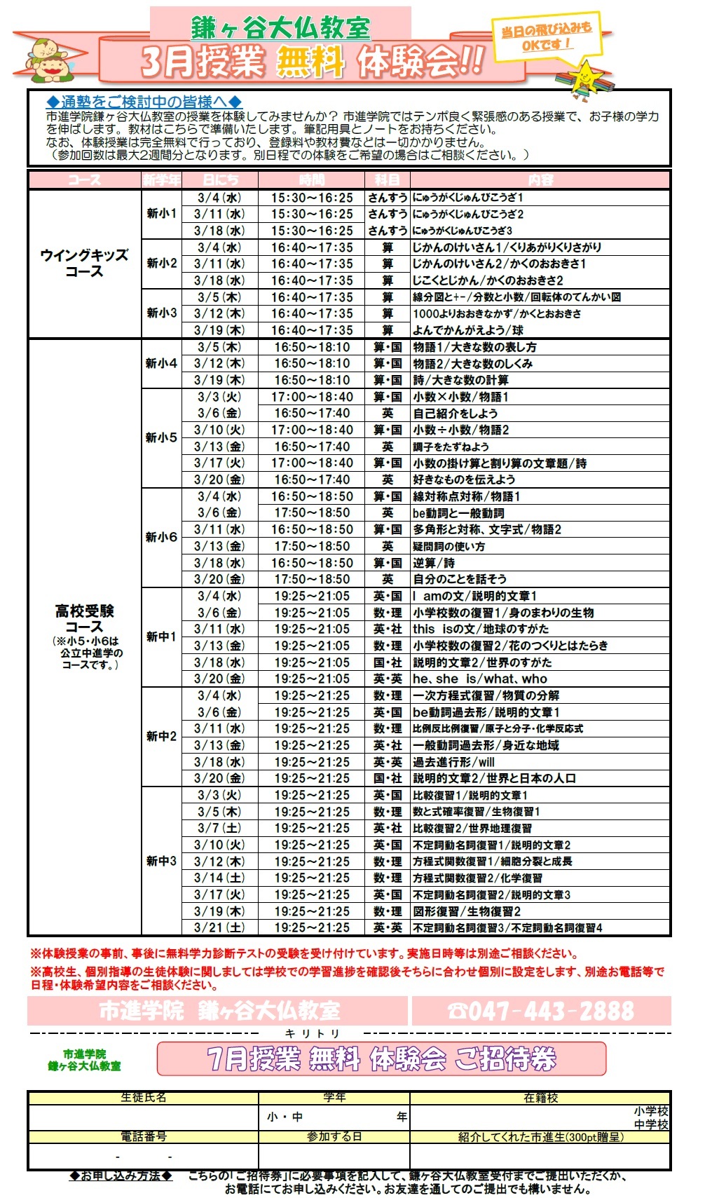 | 中学受験クラスのお知らせ | |