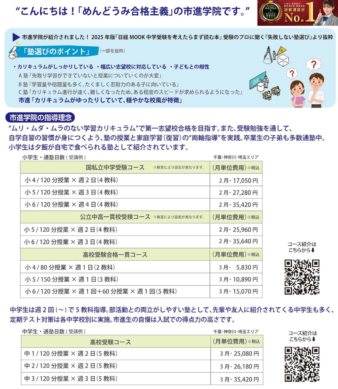 得意科目は市進学院、苦手科目は個太郎塾など