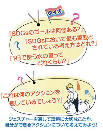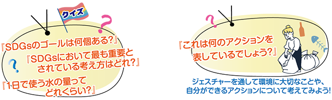 クイズやジェスチャーを使って、基礎的なSDGsに関する知識が学べるイベントです。