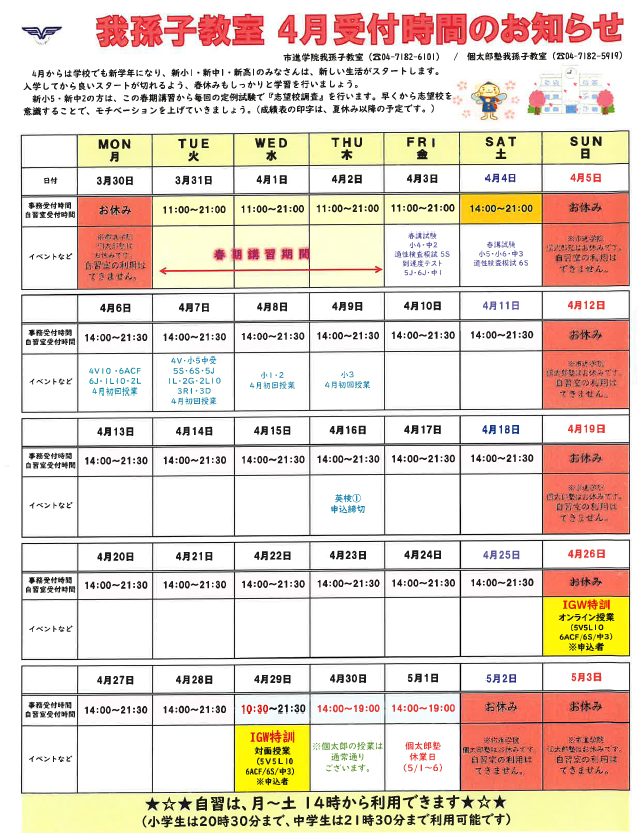 個太郎塾我孫子教室 お問い合わせは☎:04(7182)5919
