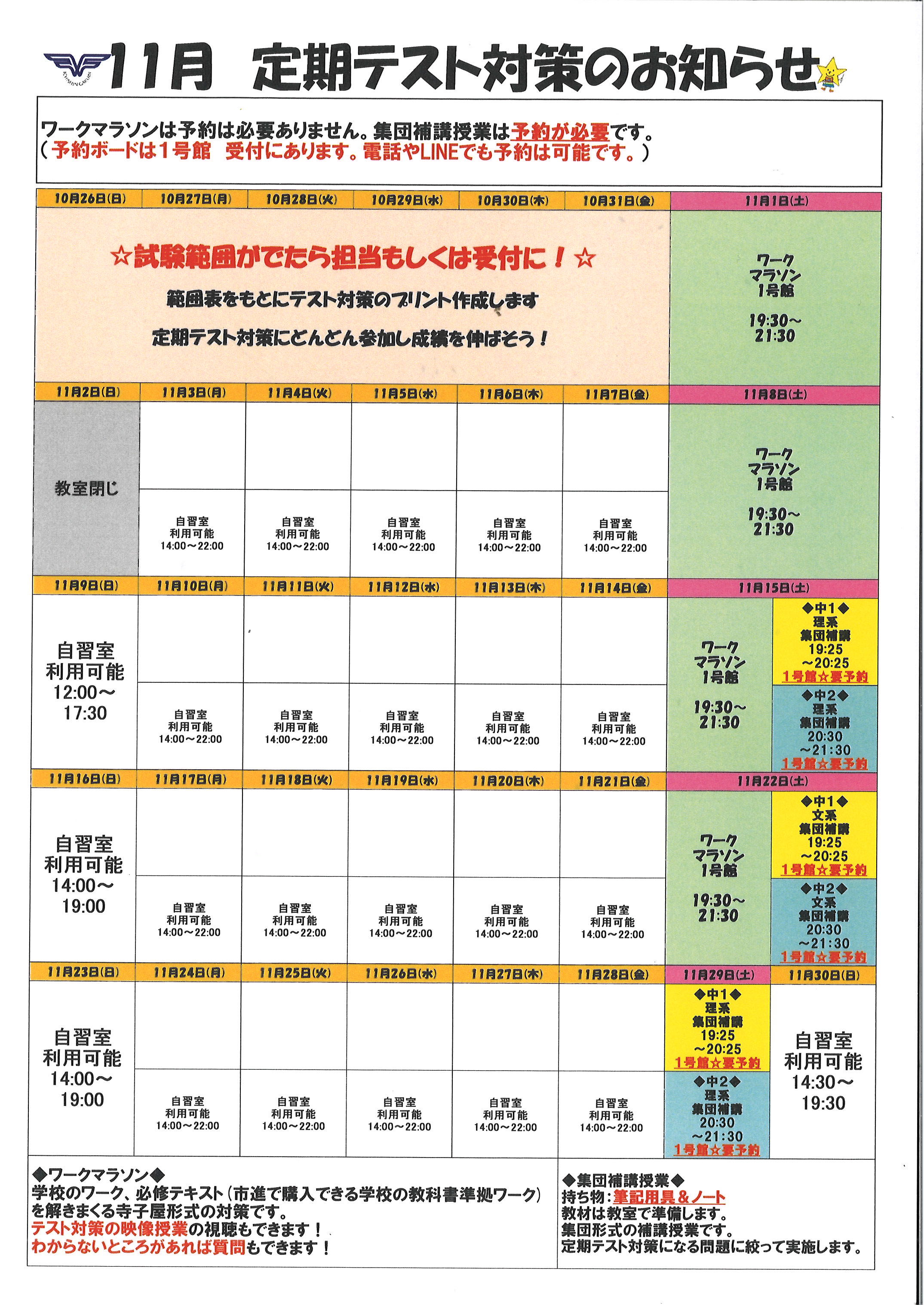 静かな環境で一緒に定期テストに向けた勉強をしてみませんか!?