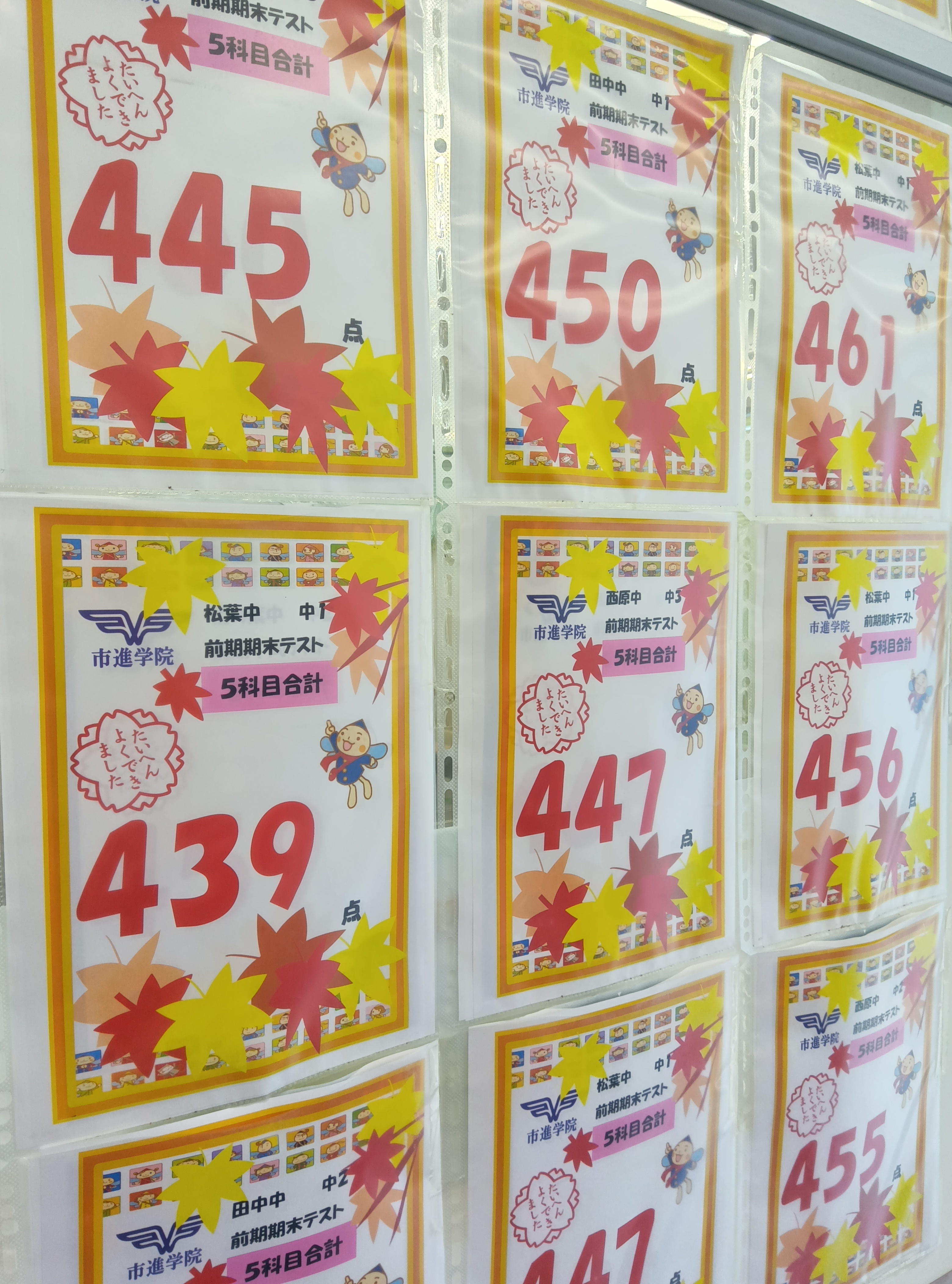 △トップへ市進学院 柏の葉教室の定期テスト結果