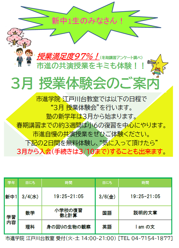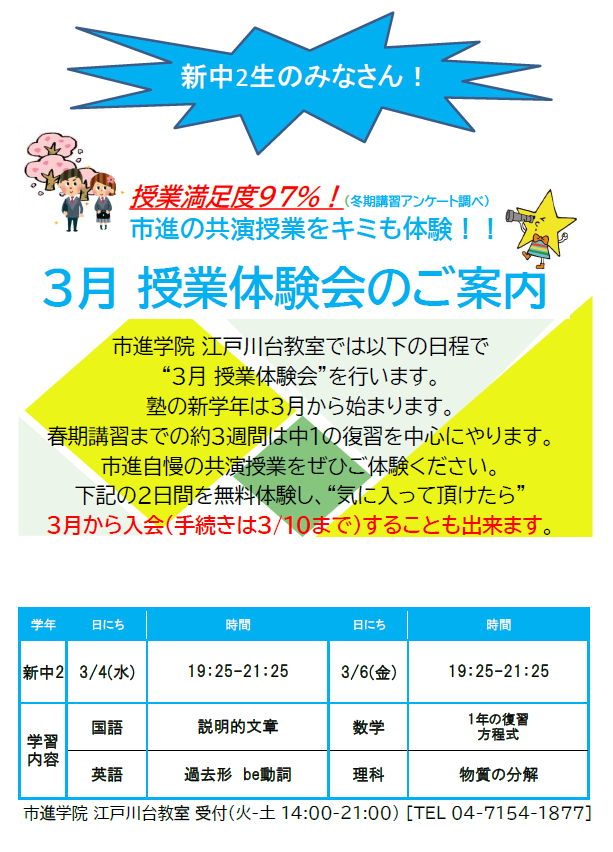 | 3月 体験授業のお知らせ | |
