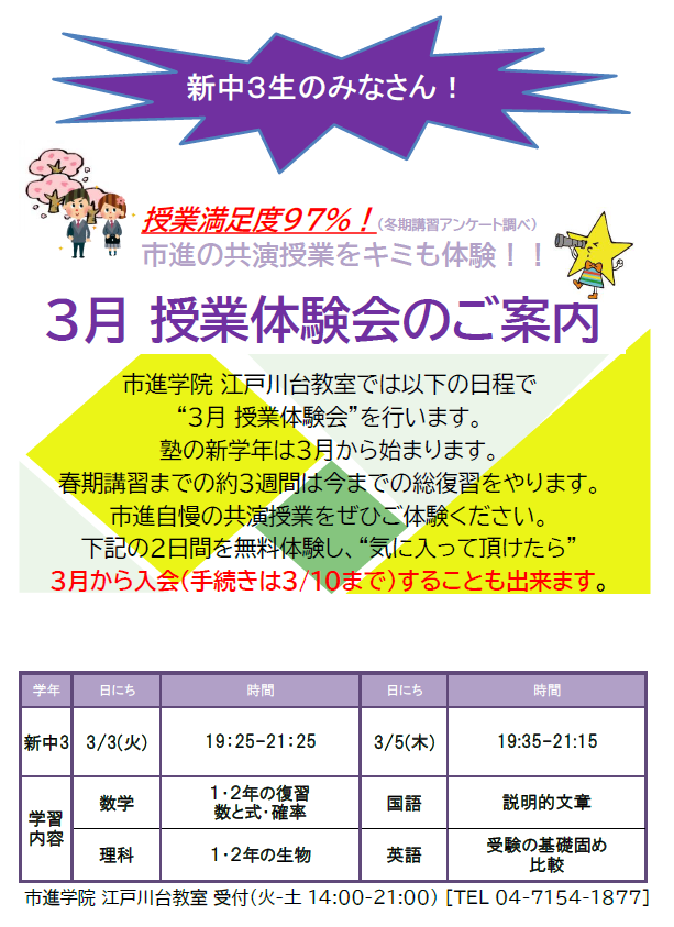| 3月 体験授業のお知らせ | |