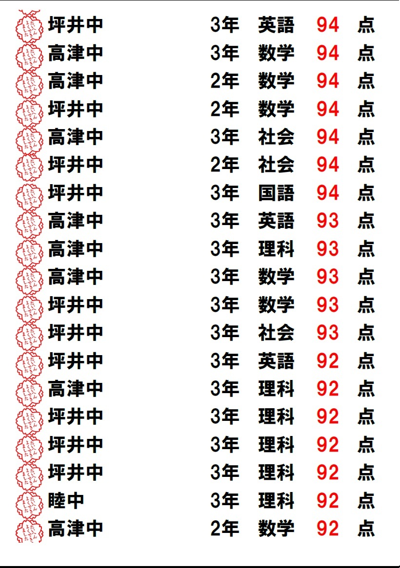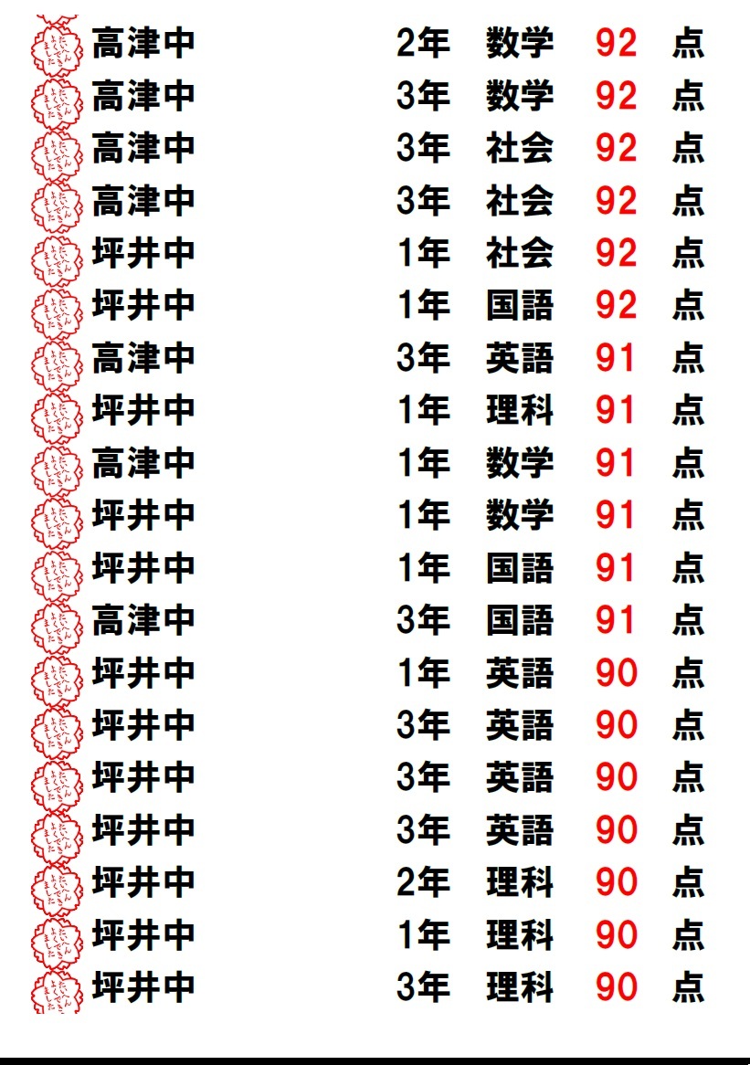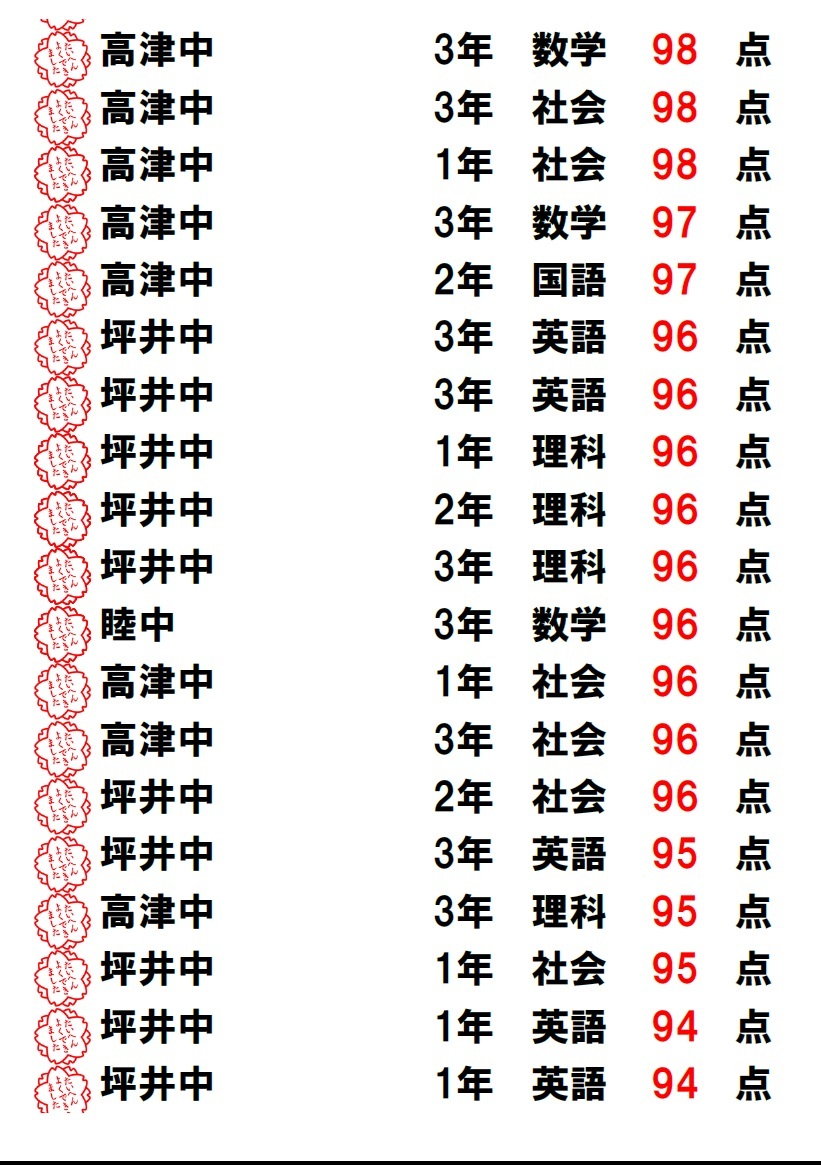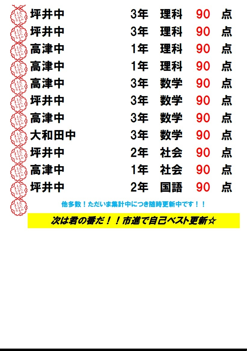 | 中1・中2 | 君の全国順位は何位?? | ||||||