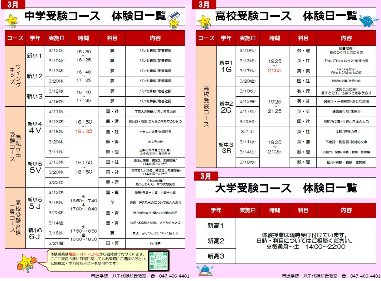 ![]() お問い合わせ・お申し込みは 市進学院八千代緑が丘教室 ☎047-406-4481 |