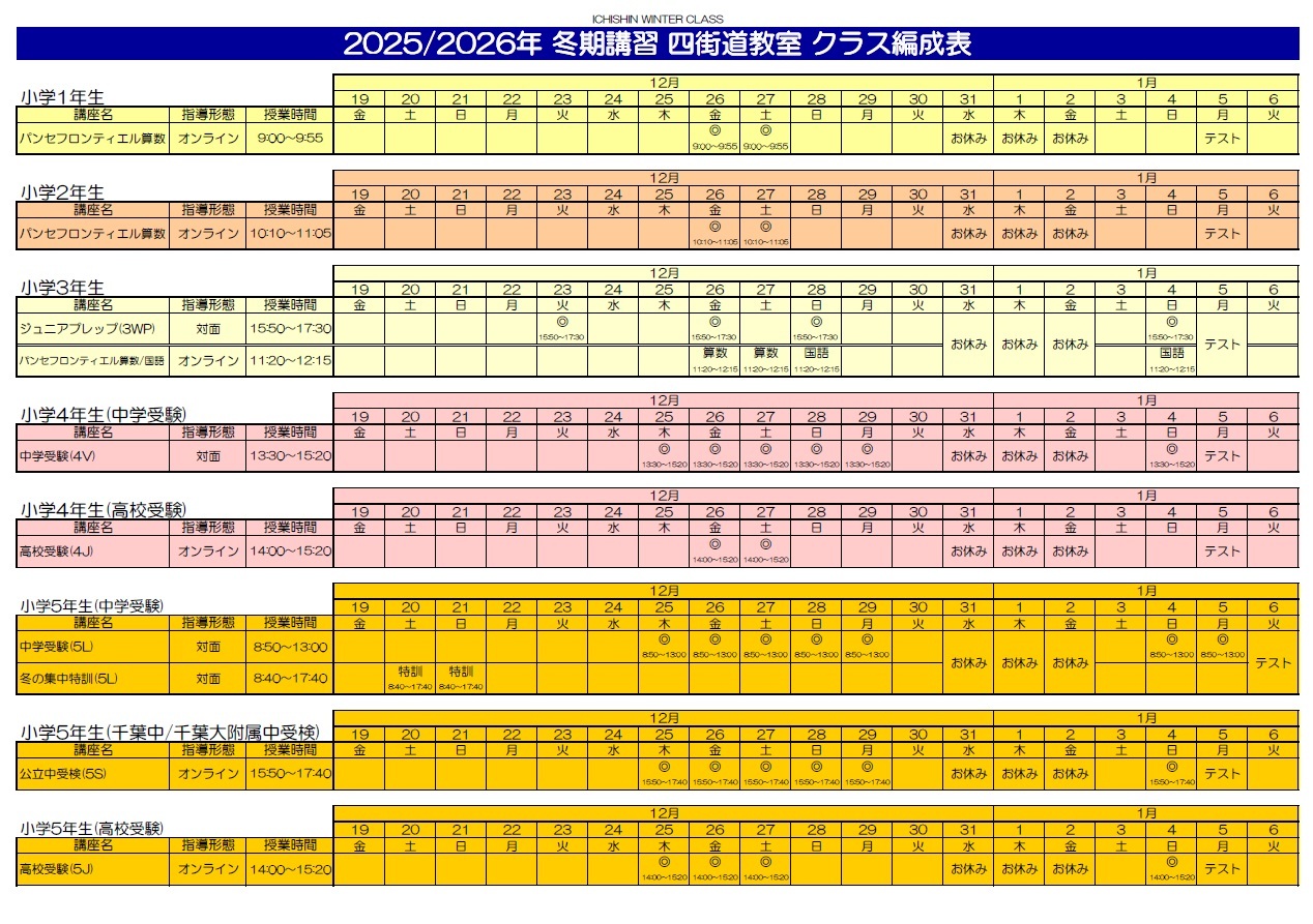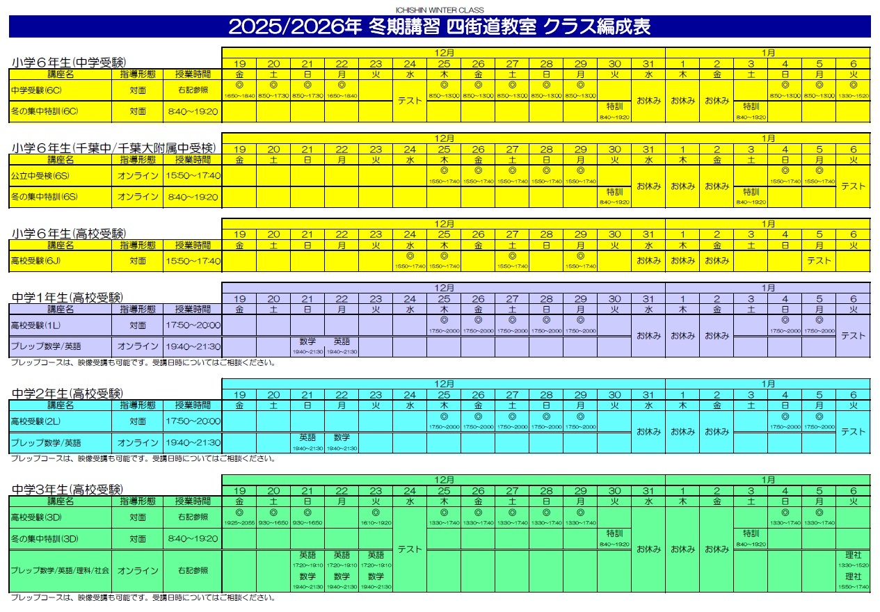 全国到達度テスト | 冬期講習 クラス編成表 | 2025年度コース案内 |