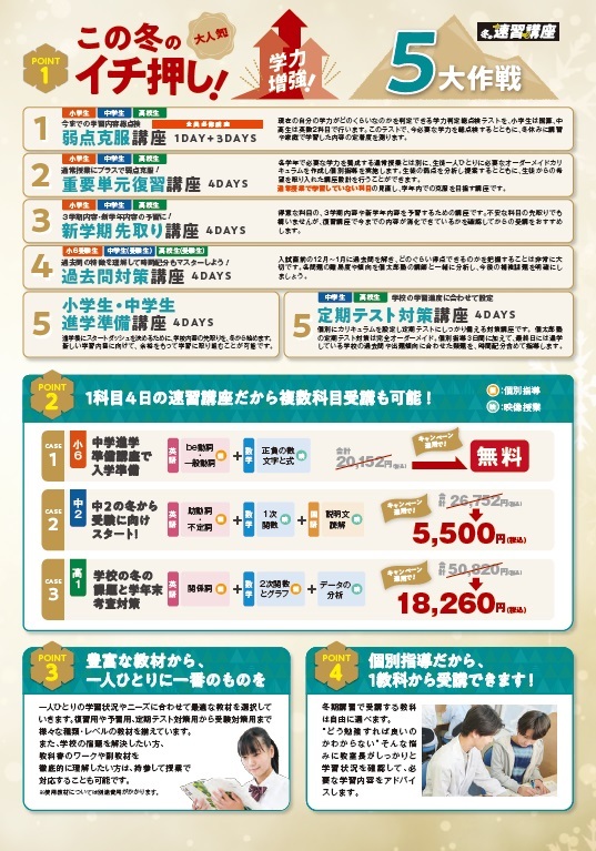 | 冬期講習 | 【中学生必見!】受験対策&定期テスト対策受付... | 【秋勉祭】開催中! |