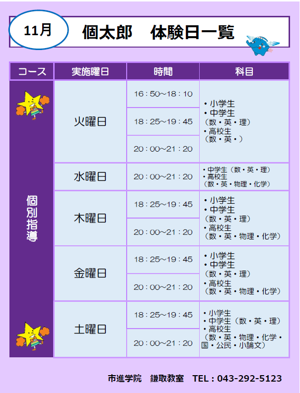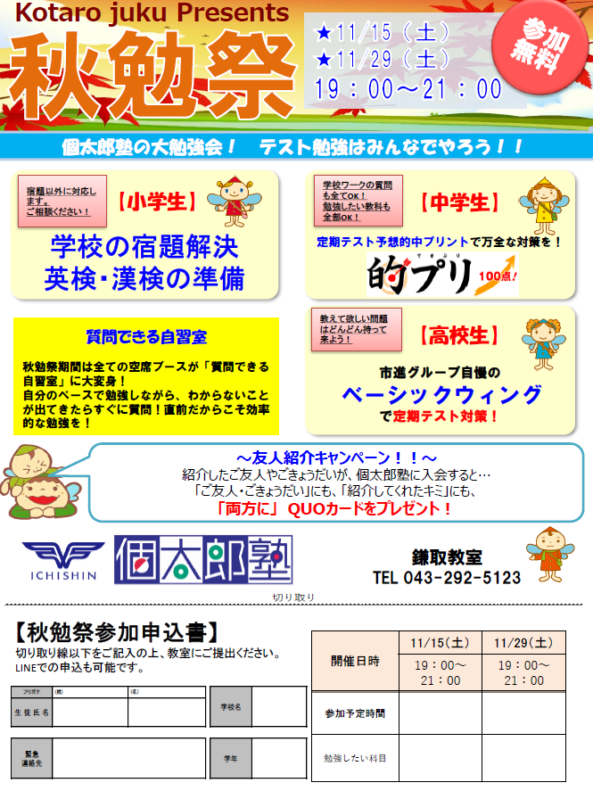 個太郎塾 鎌取教室 ☎:043(292)5123