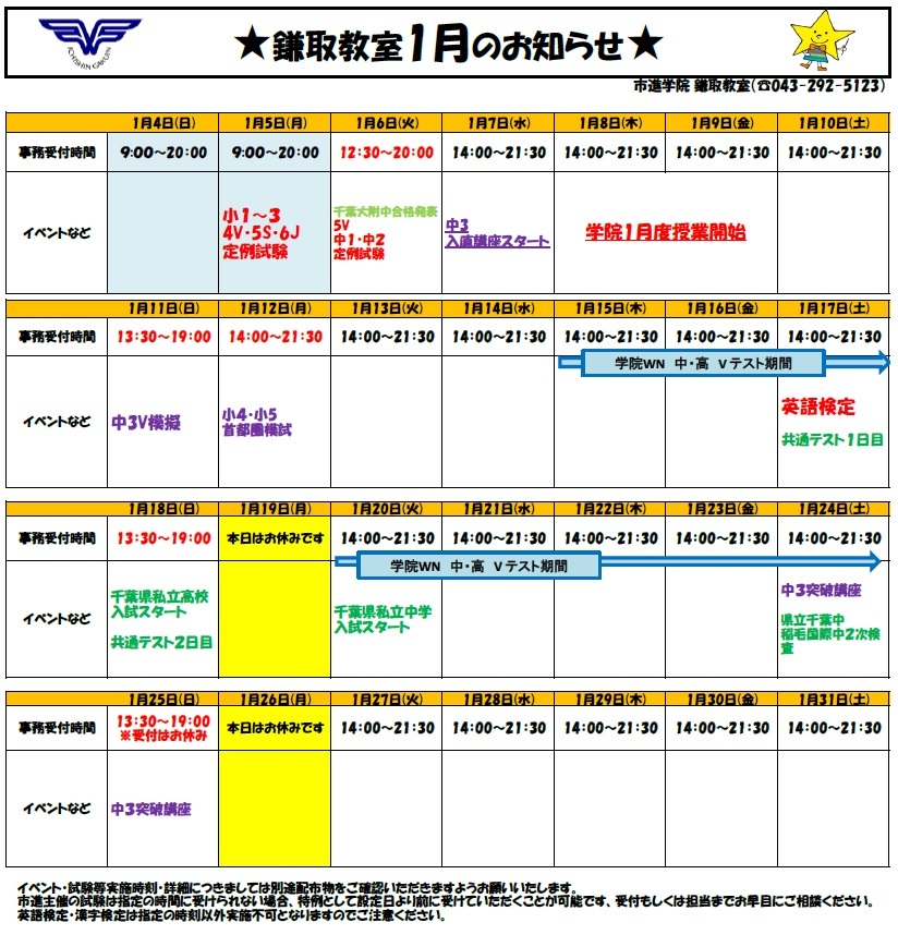 その後1月31日までに入会すると、初月から最大5,000円割引(税込) 《友人・兄弟姉妹紹介 キャンペーン》 ① 被紹介者が冬期講習受講の場合、紹介者・被紹介者それぞれに 2,000分のQUOカードプレゼント ② 被紹介者が講習を受講後1月31日までに入会手続きを行った場合、 紹介者・被紹介者それぞれに3,000分のQUOカードをプレゼント 教室責任者:久田(くだ) 電話:043-292-5123 |