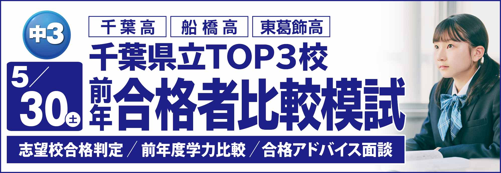 | 【中学生】高校入試説明会&新中1スタートテス... | 【高校生】全国合格力判定模試 | 【中3生】千葉県公立高校 合格判定模試 |