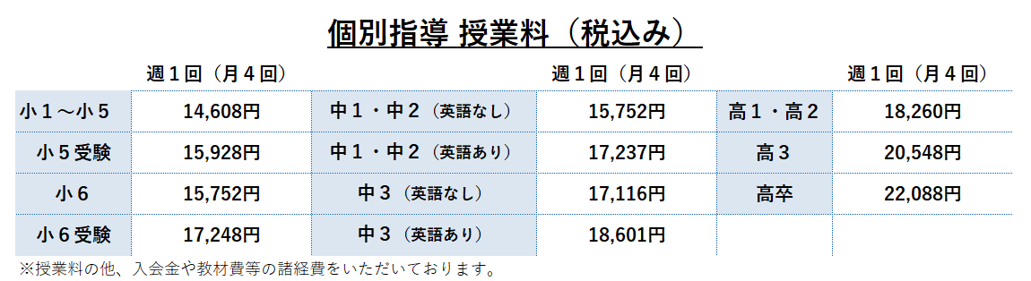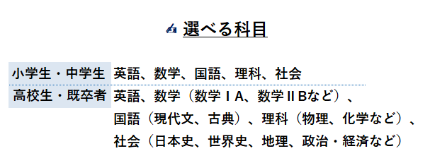 (いずれも1教科から全教科指導します)