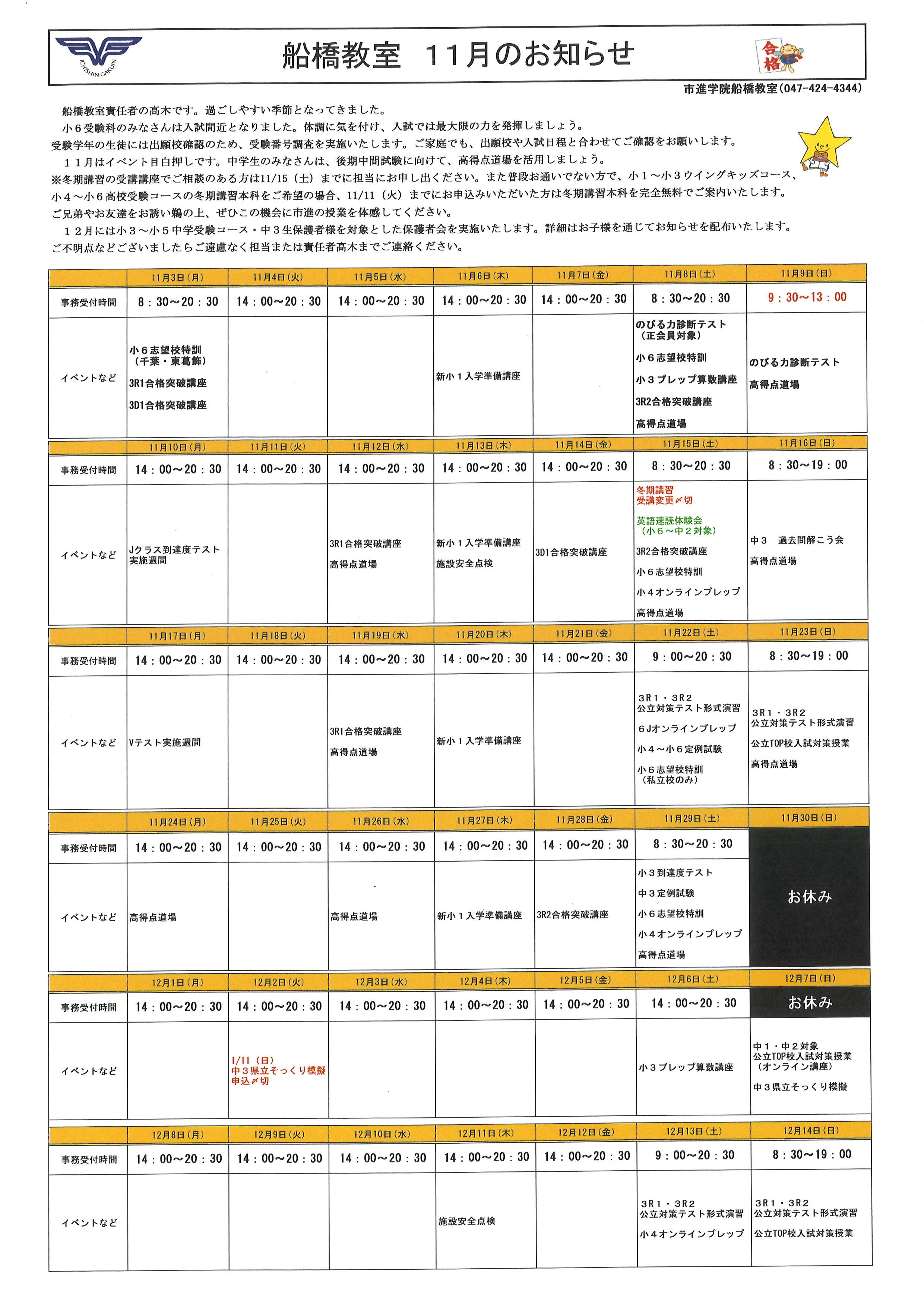 お気軽にお問い合わせください! お問い合わせは 市進学院 船橋教室まで ☎︎047-424-4344(電話受付時間:月〜土 14:00~20:30) |