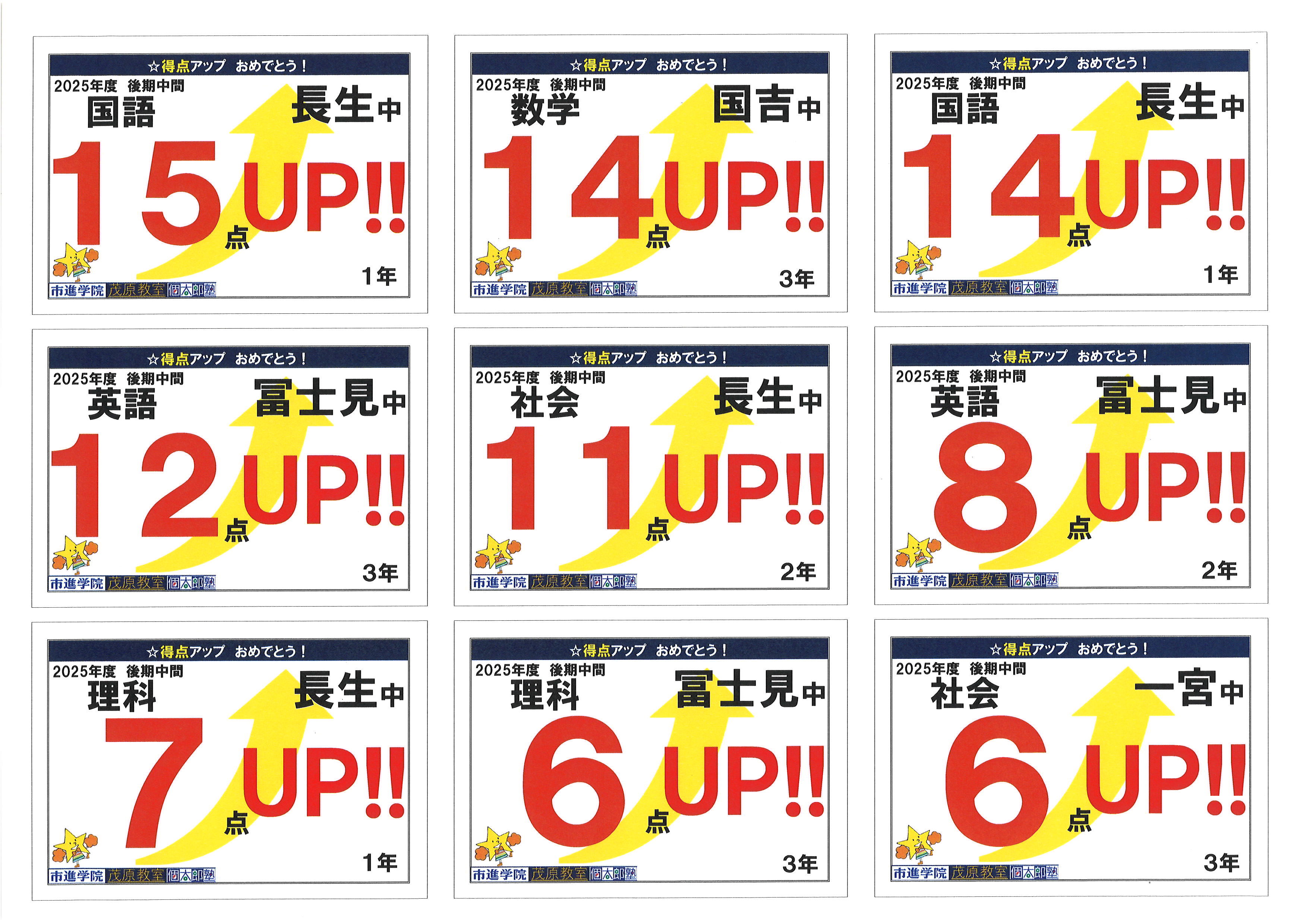 | ■中学生■後期中間テスト!がんばりました! | 冬の日程(営業時間) | 新中1(現小6)進学応援キャンペーン!! |