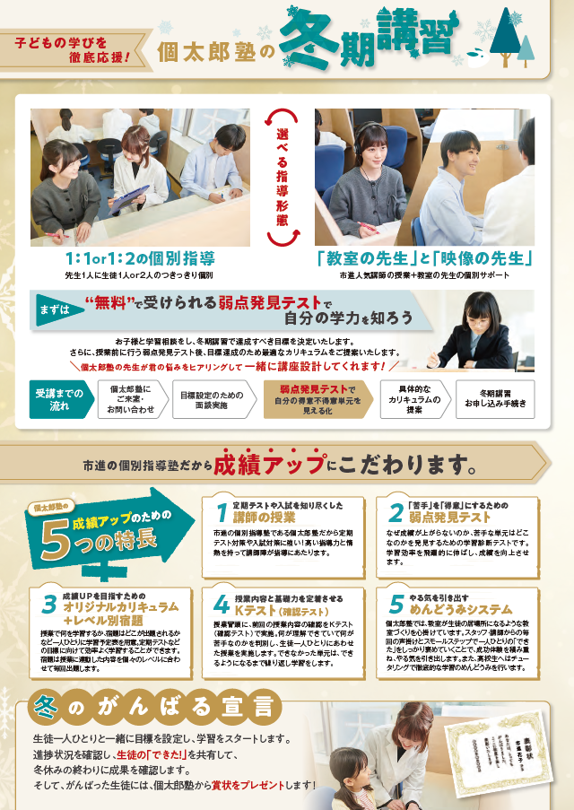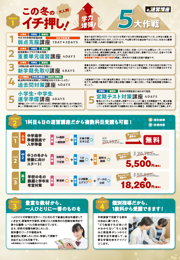 | 新中1(現小6)進学応援キャンペーン!! | 冬期講習! | 冬期講習受付開始について |