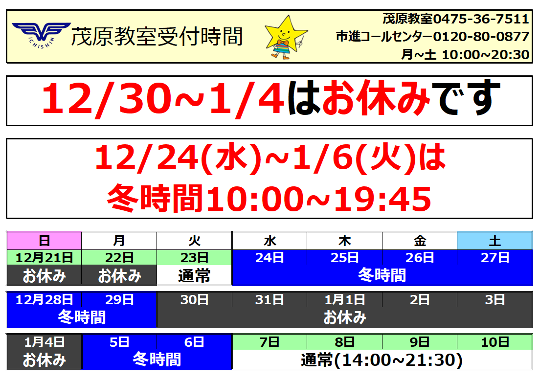 | ■中学生■後期中間テスト!がんばりました! | 冬の日程(営業時間) | 新中1(現小6)進学応援キャンペーン!! |