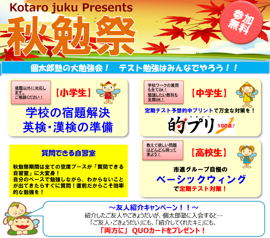 個太郎塾では、「短期受講」を利用し、集中的に目的に合わせた学習が可能です!通常個別指導を受講していない方にもお勧めです。