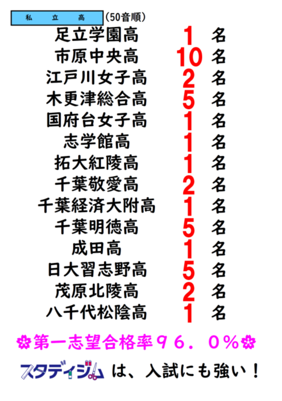 | 市進学院スタディジム高校受験合格実績速報! | |