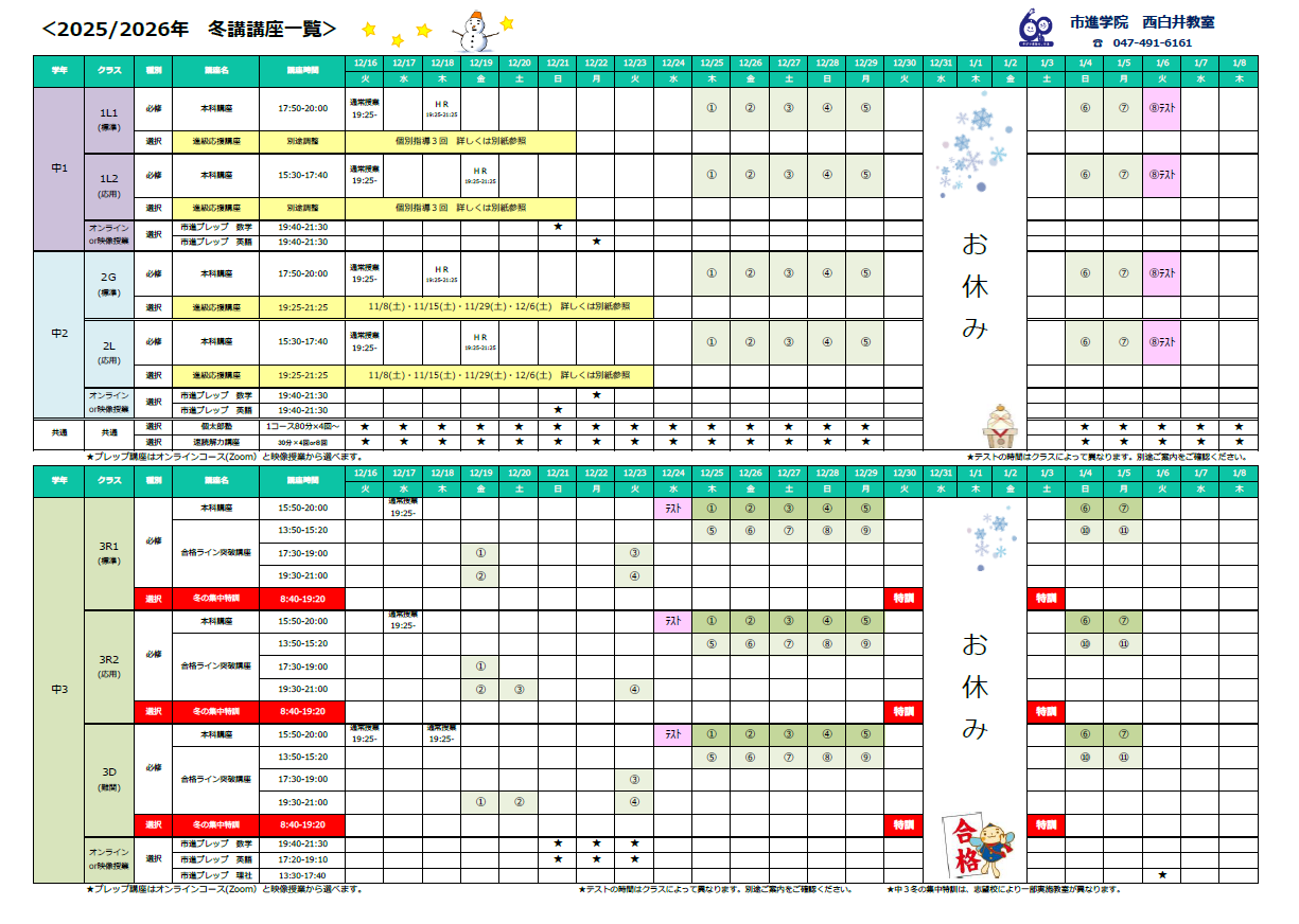 | 冬期講習ご案内 | |