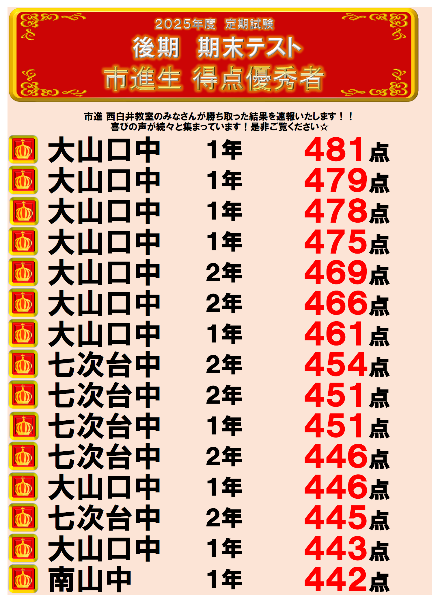 | 中学受験合格速報(^O^)/ | 春期講習のご案内 | 定期テスト対策 |