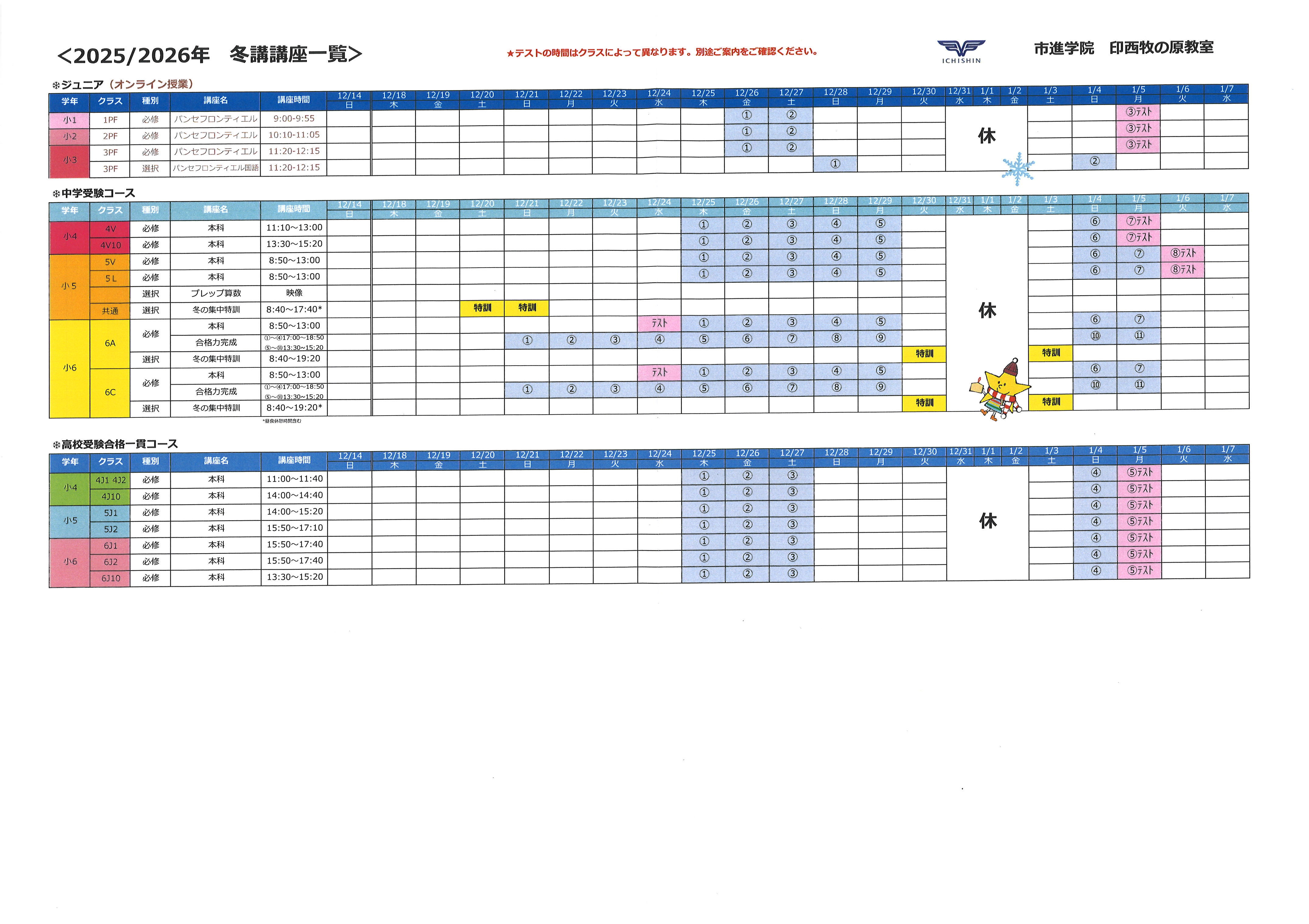 次学年に向けた冬休み。 現学年の内容を復習して 自信をもって学年上がりませんか?