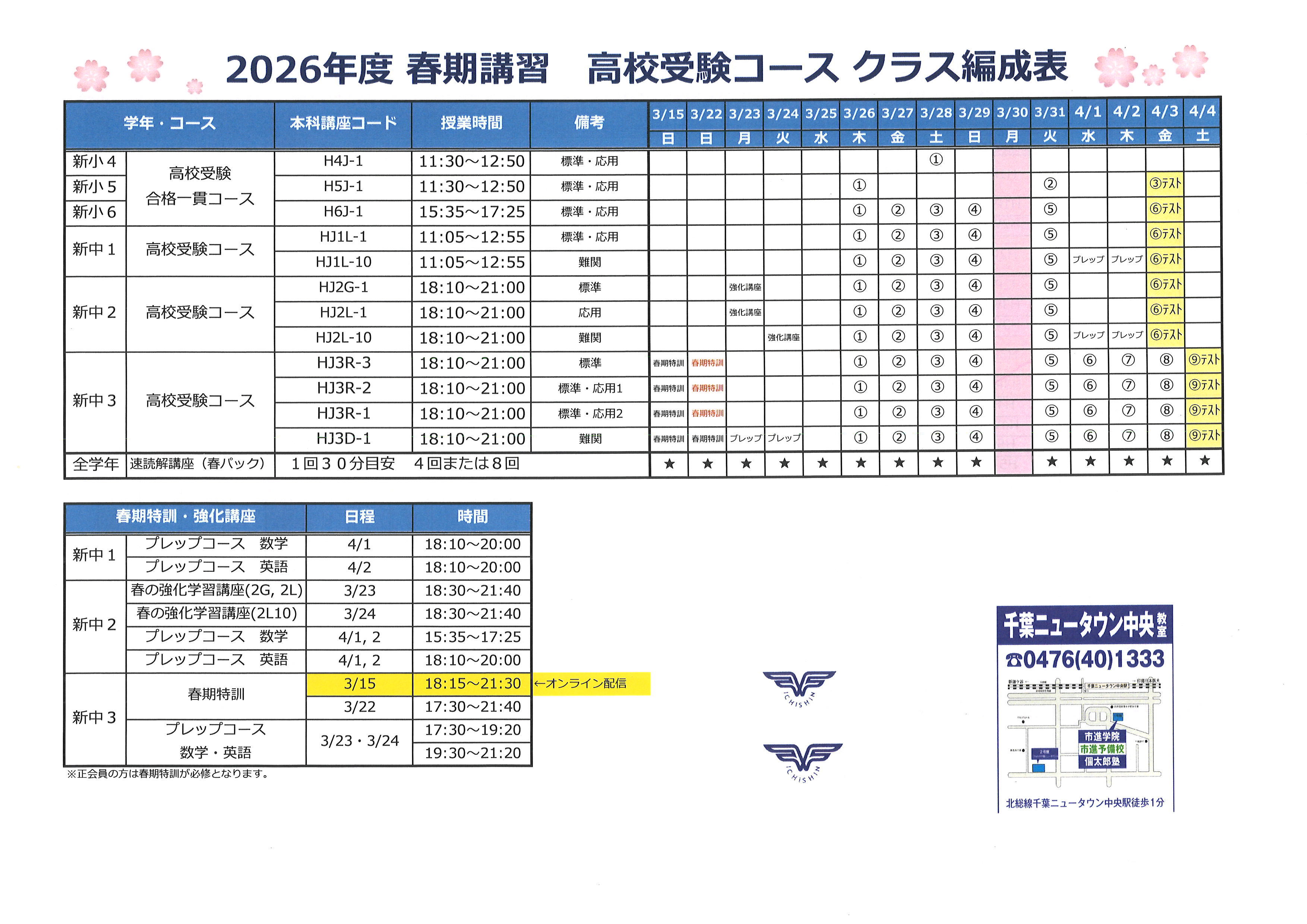 | ◆入塾をご検討の方へ◆入会申込の流れ | 春期講習 | 2026年春 千葉ニュータウン中央教室 高校... |