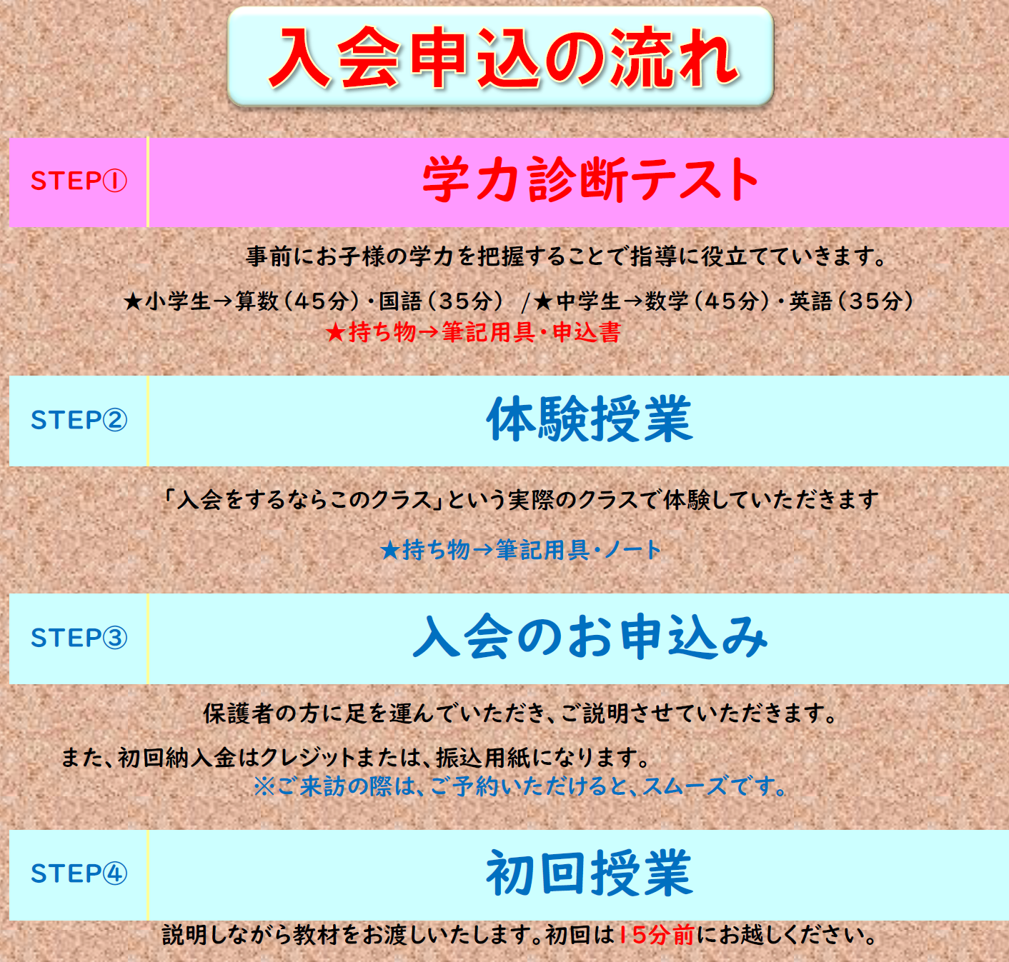 | ◆入塾をご検討の方へ◆入会申込の流れ | |