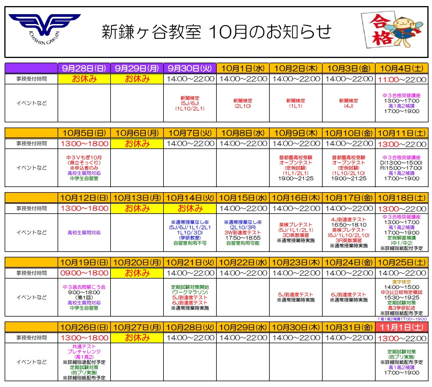 10月からの入会をご検討の方はお早めにご連絡ください! | |