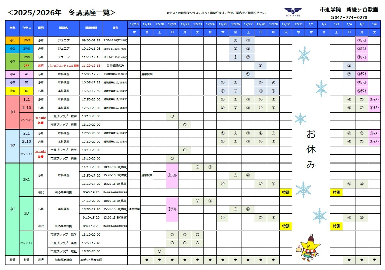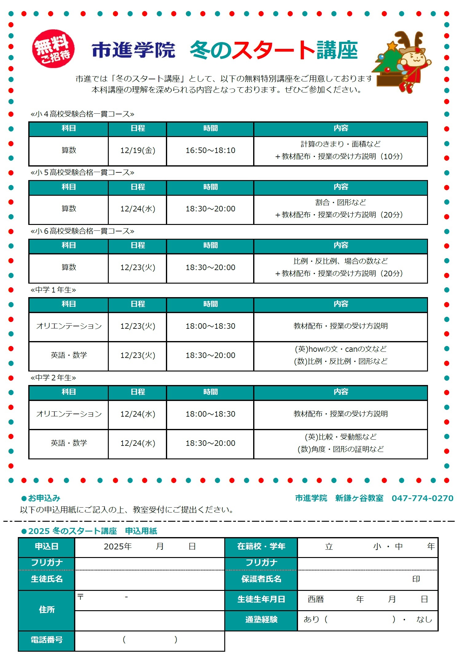ご不明な点は教室まで お問合せください! 市進学院 新鎌ヶ谷教室 ☎ 047-774-0270 |