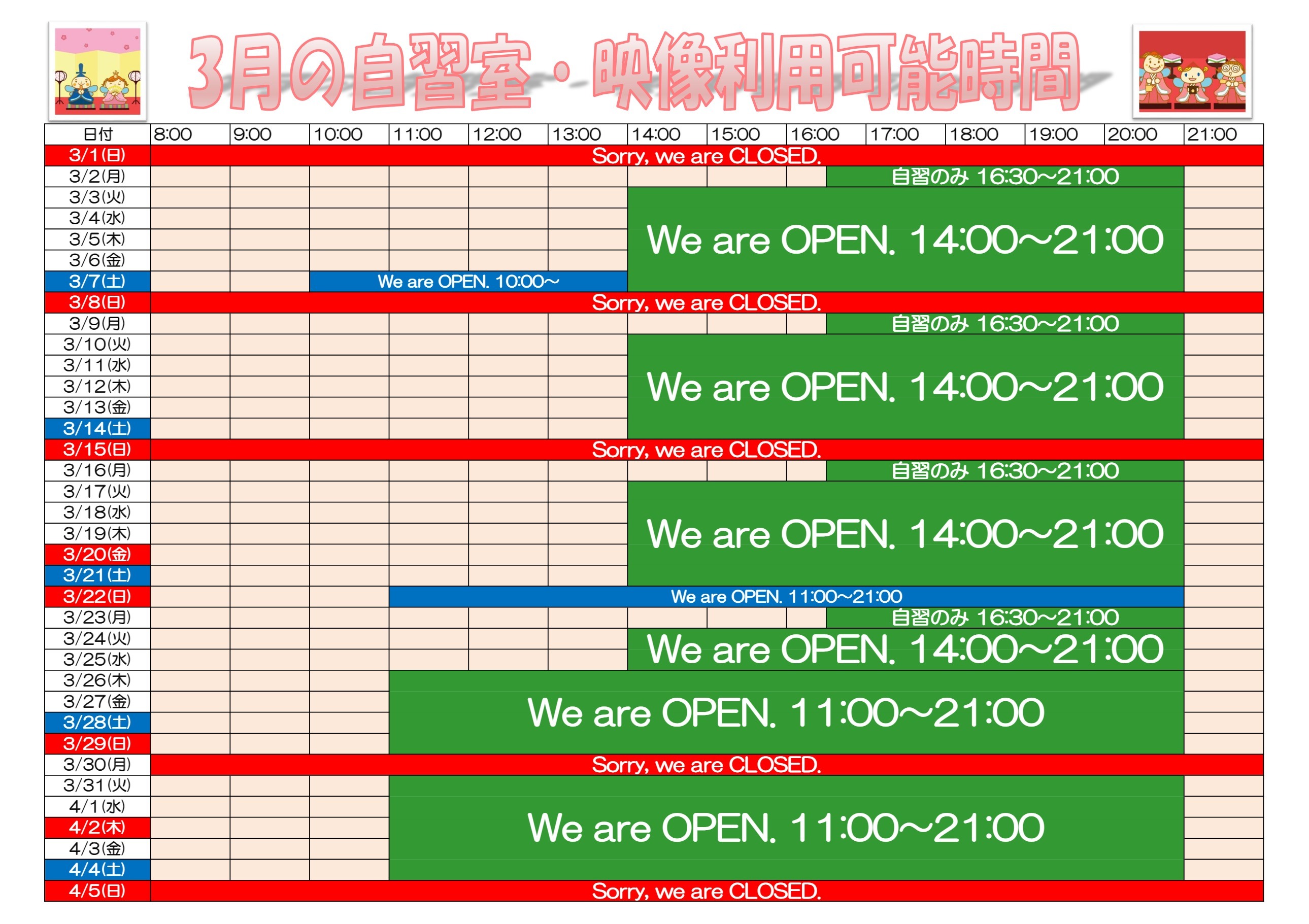 火曜日から土曜日の14:00~20:30