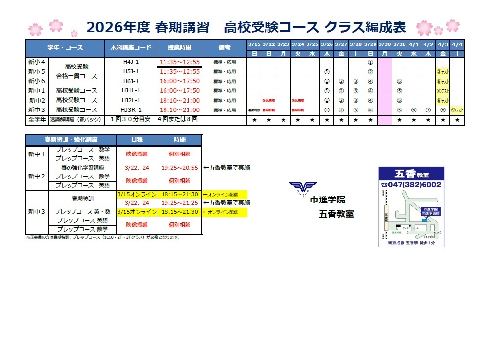 五香教室春期講習日程