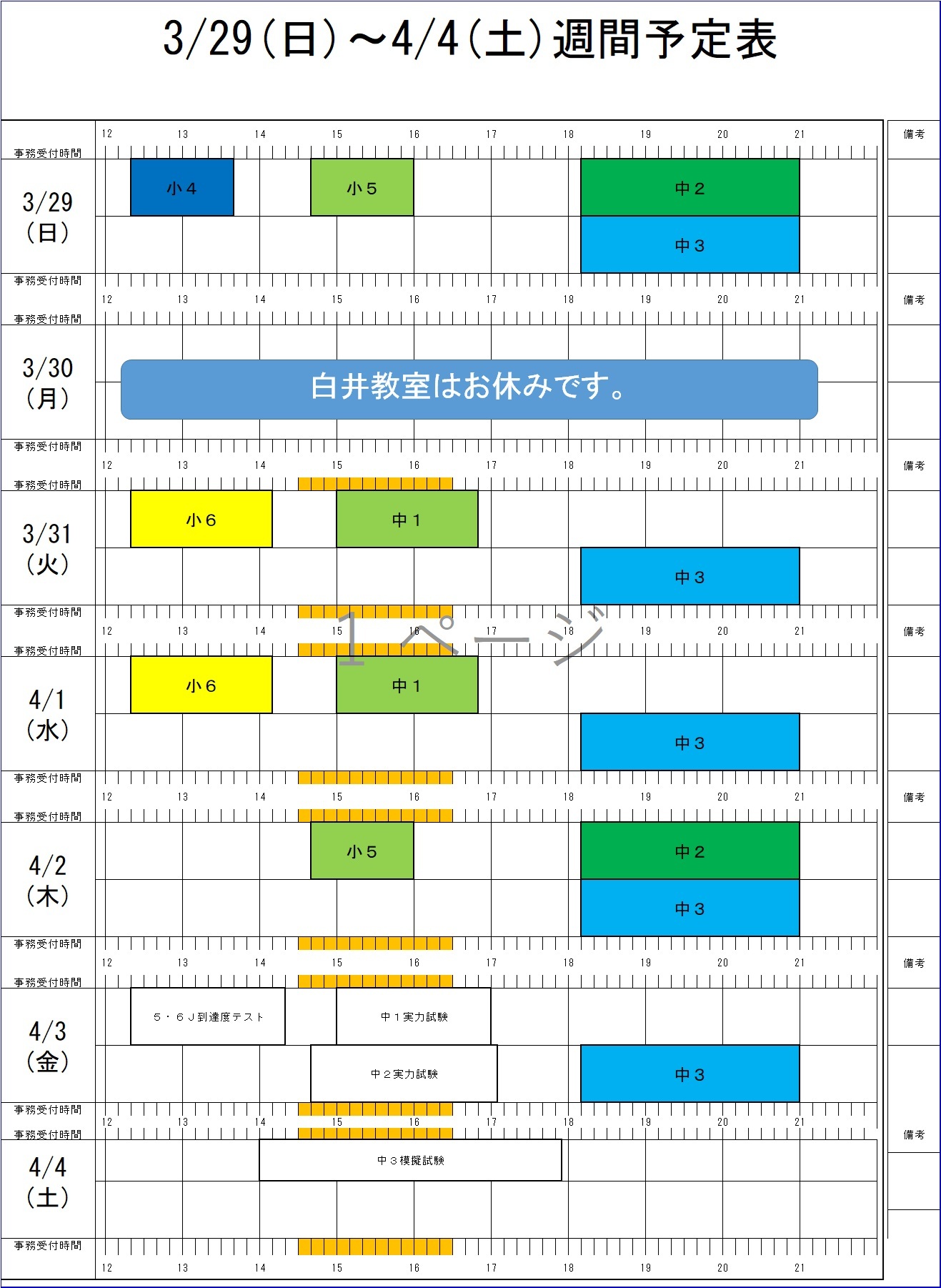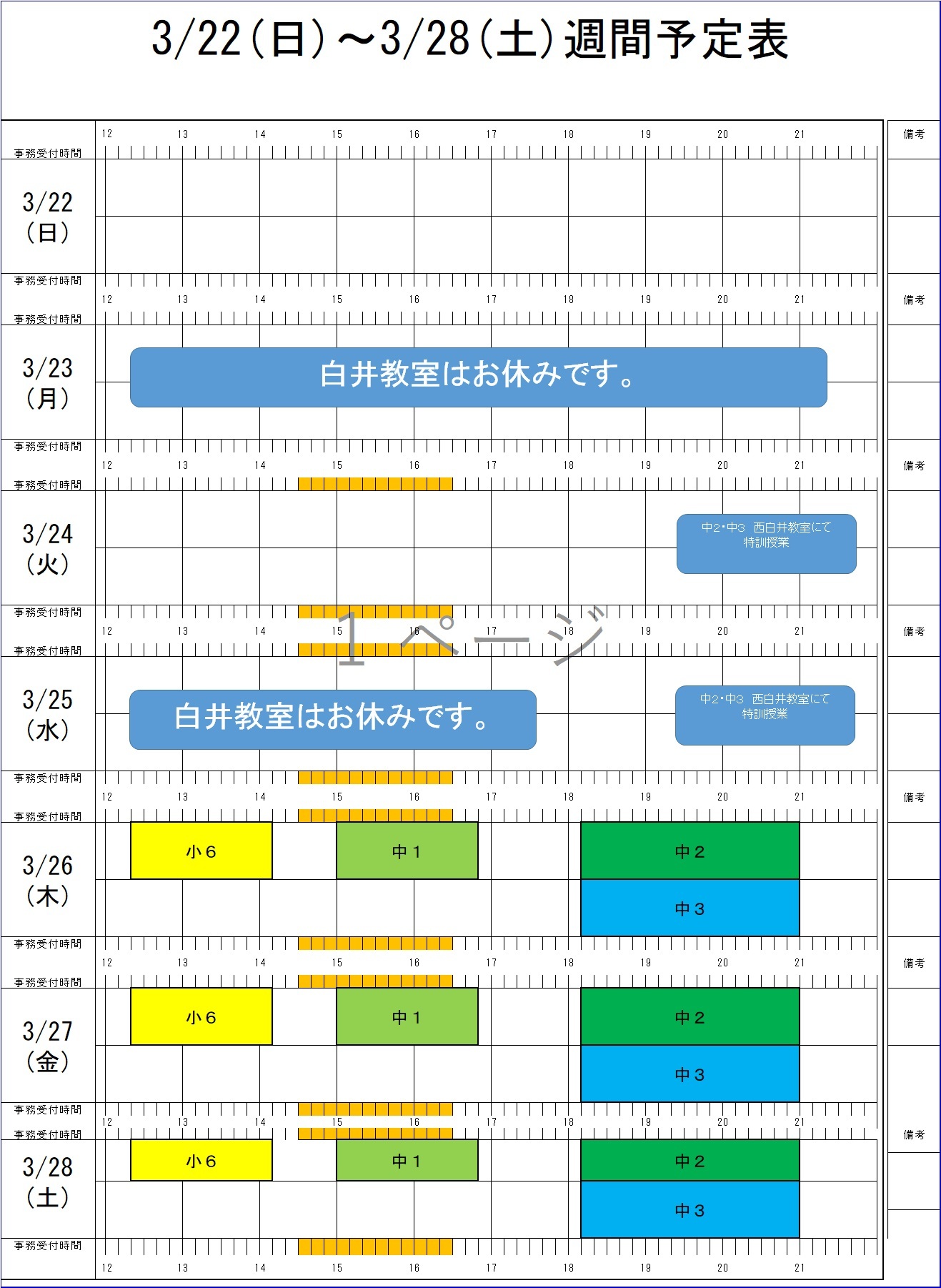 | 授業スケジュール | 2025年度クラス編成 白井教室 特別応援... | 防災訓練 |