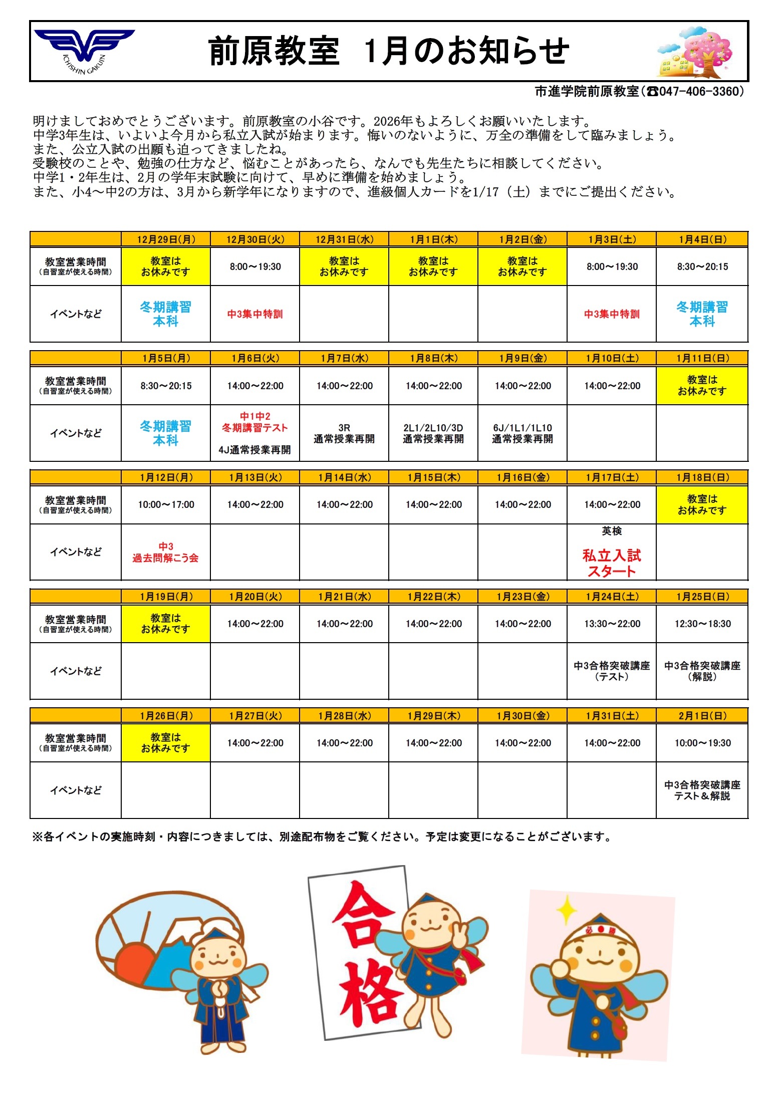 市進学院 前原教室 TEL 047-406-3360 (火~土 14:00~20:30) |