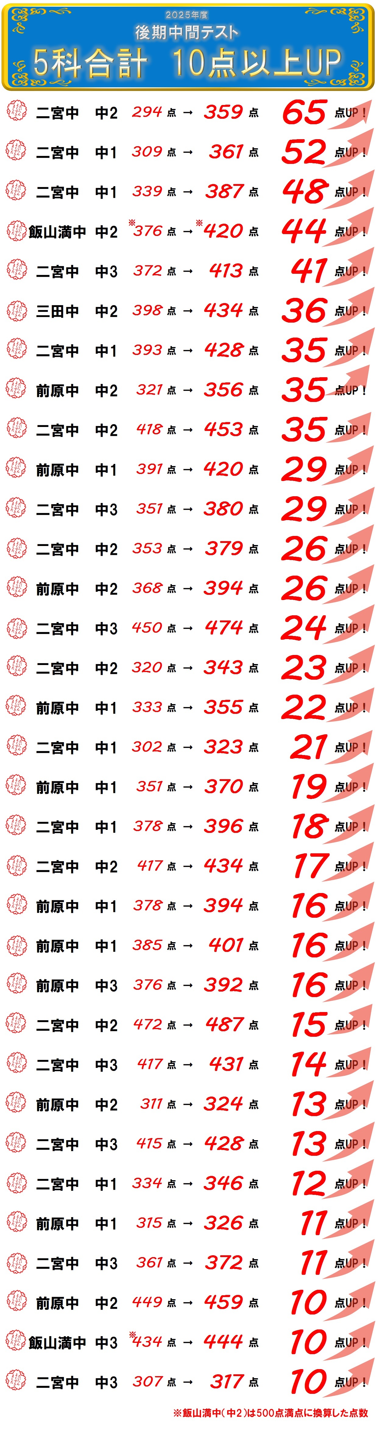 多くの生徒が点数大幅UPを達成しています!