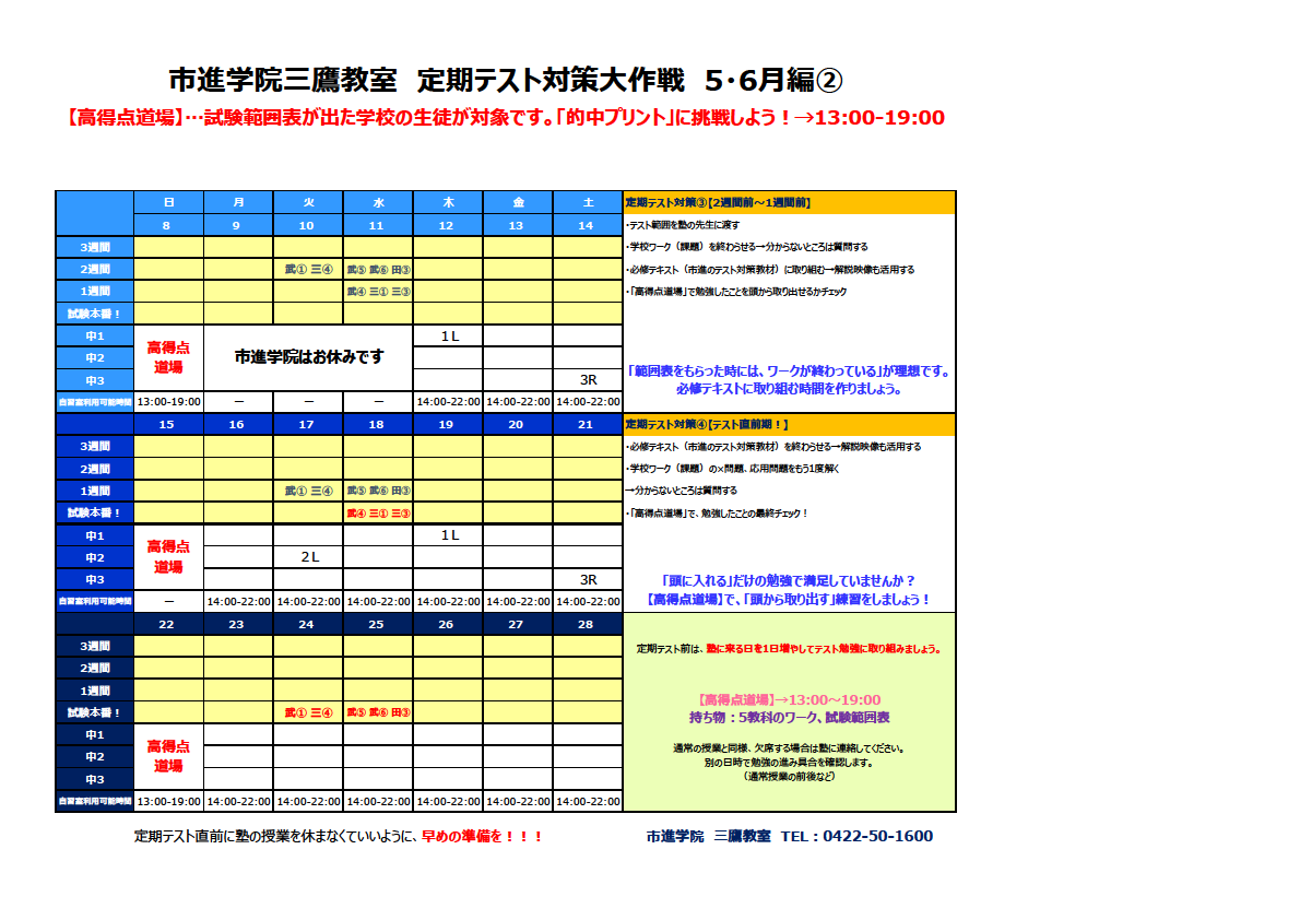実技対策もできちゃいます! ふだん通っていない人でも大歓迎! 市進の定期テスト対策に参加して 自己ベストを更新しよう!!次は君の番だ!