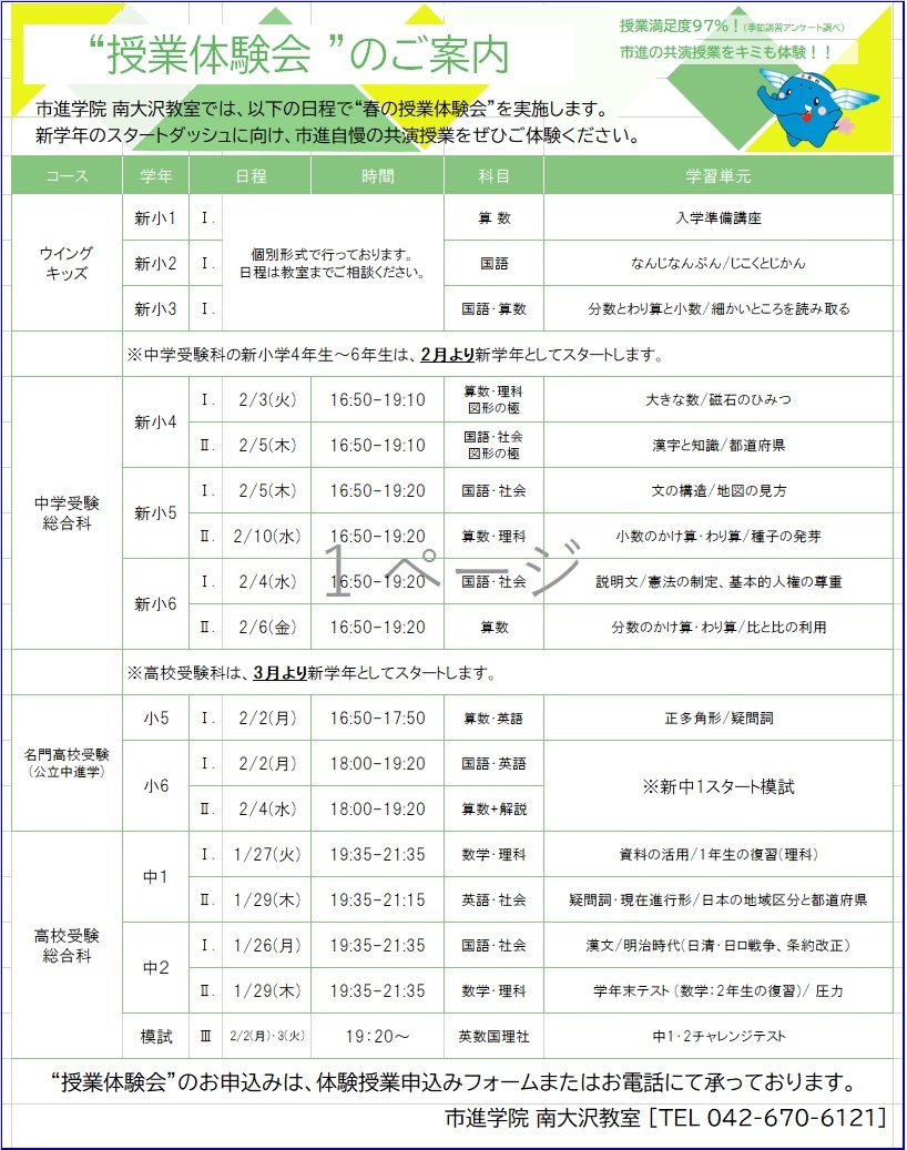 学習塾 市進学院 南大沢教室の公式ホームページです。