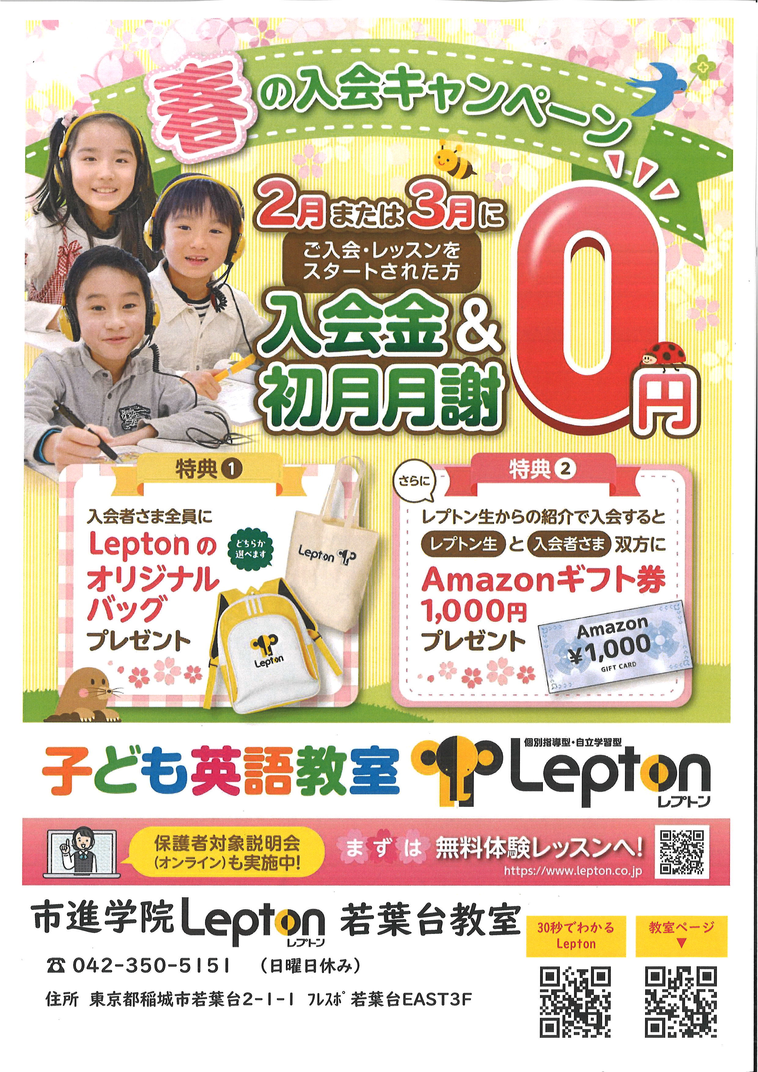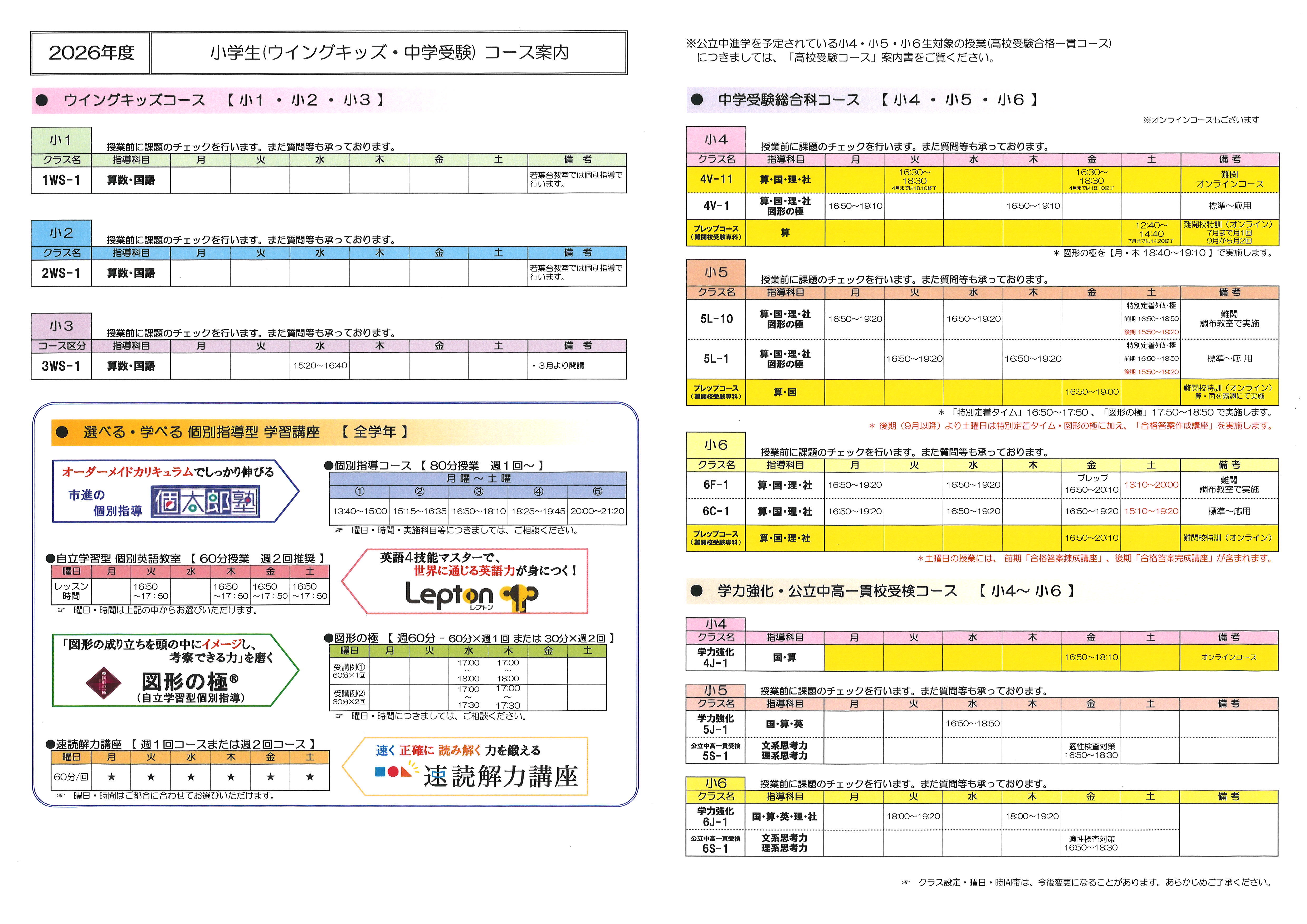 若葉台教室では、中学1年生・2年生対象(通塾生限定)に