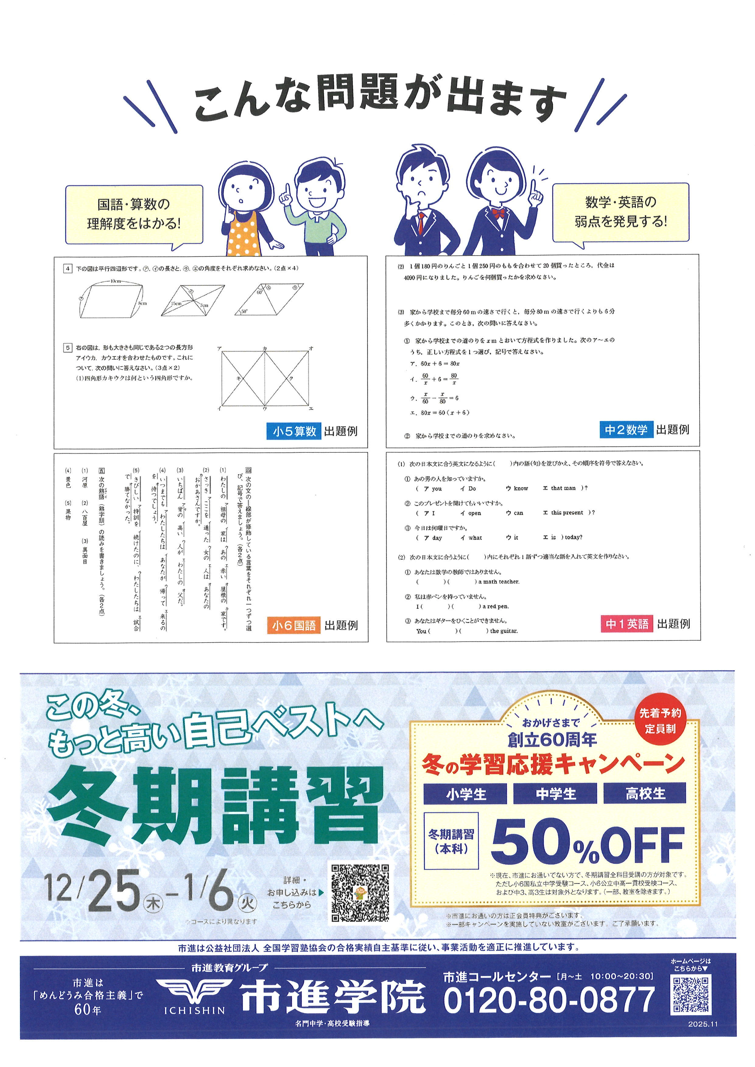 若葉台教室では、12月6日(土)16時以降に行いますが、 学年によって異なります。電話などでお問い合わせくだ |