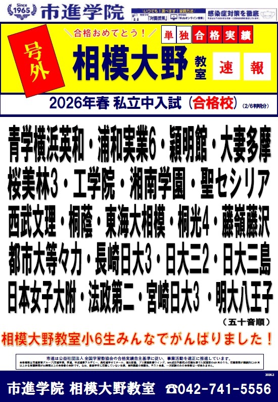 お申し込みは市進学院 相模大野教室までお気軽にご連絡ください!