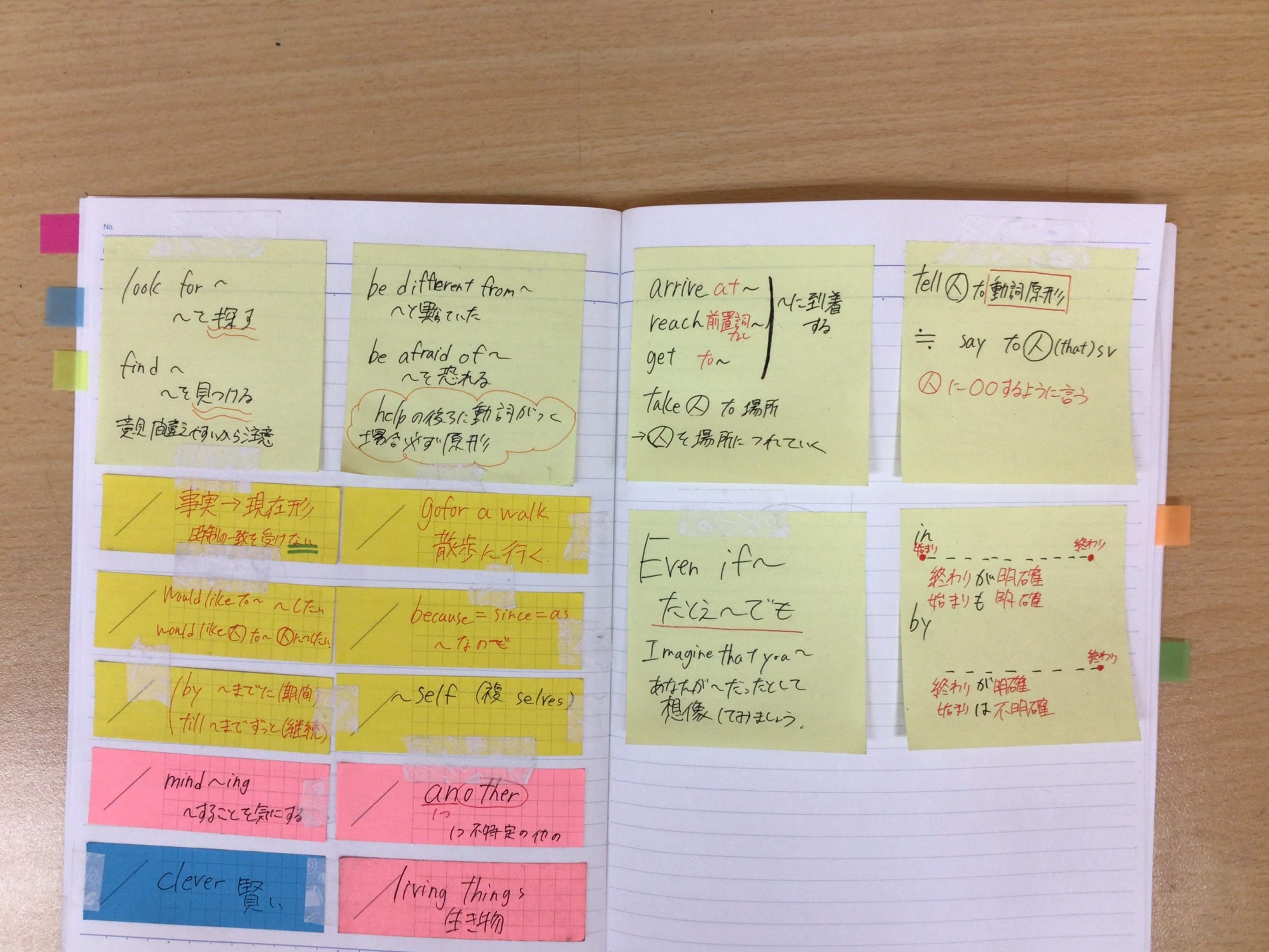 付箋に覚えたい内容を書いて机に貼っていたものをノートに貼り直したそうです。