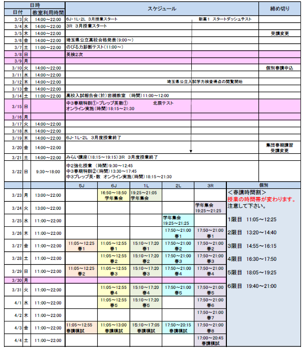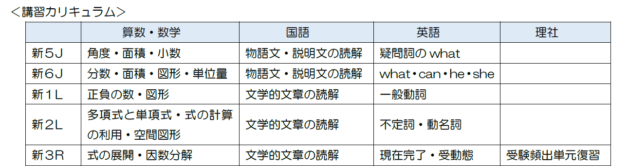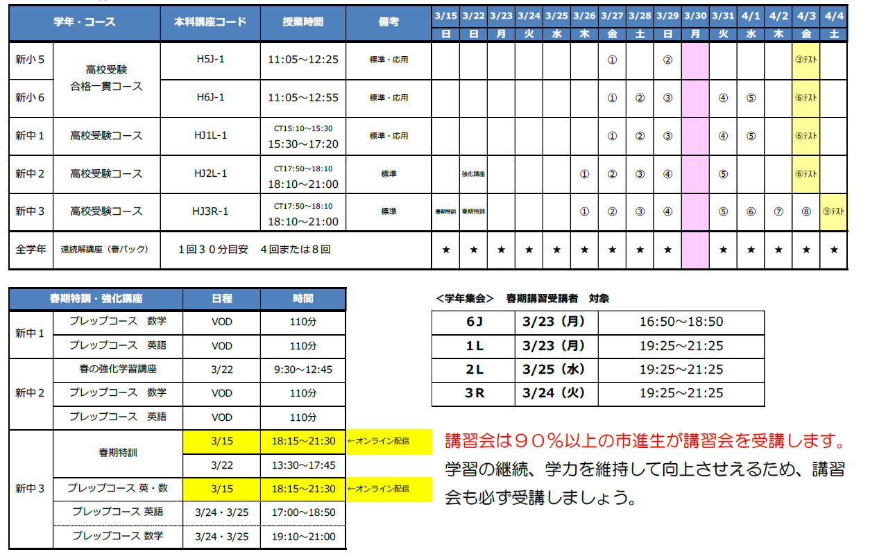 | 小・中・高 | 春期講習会 |