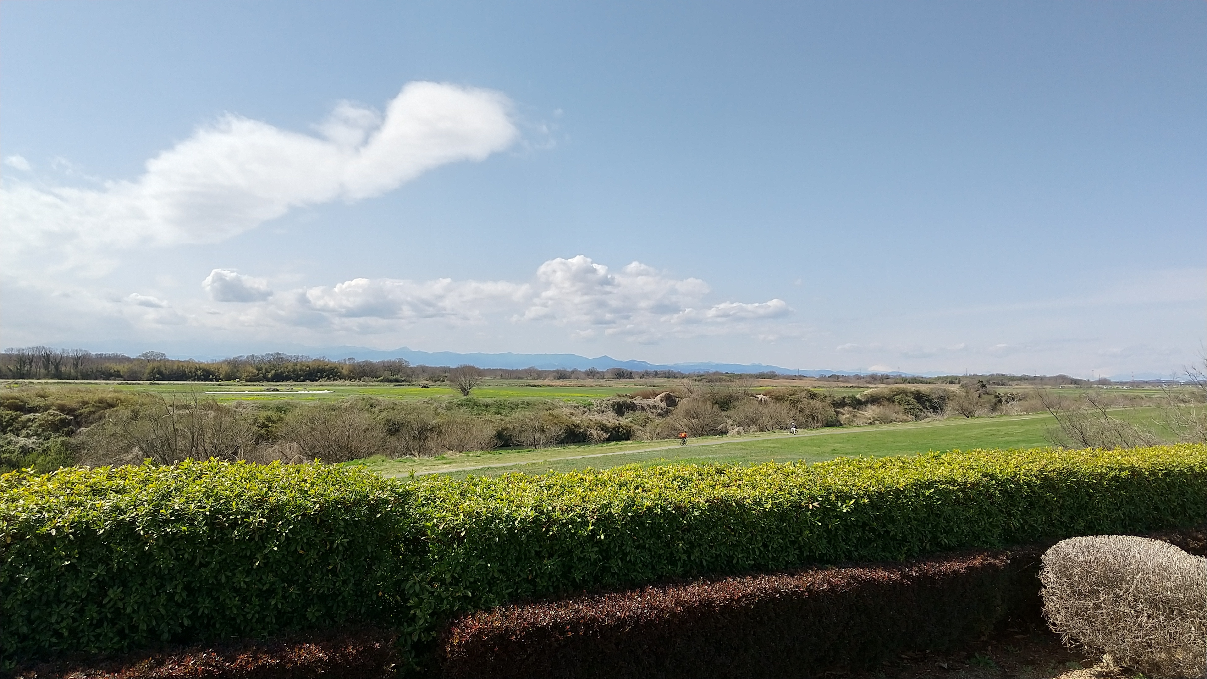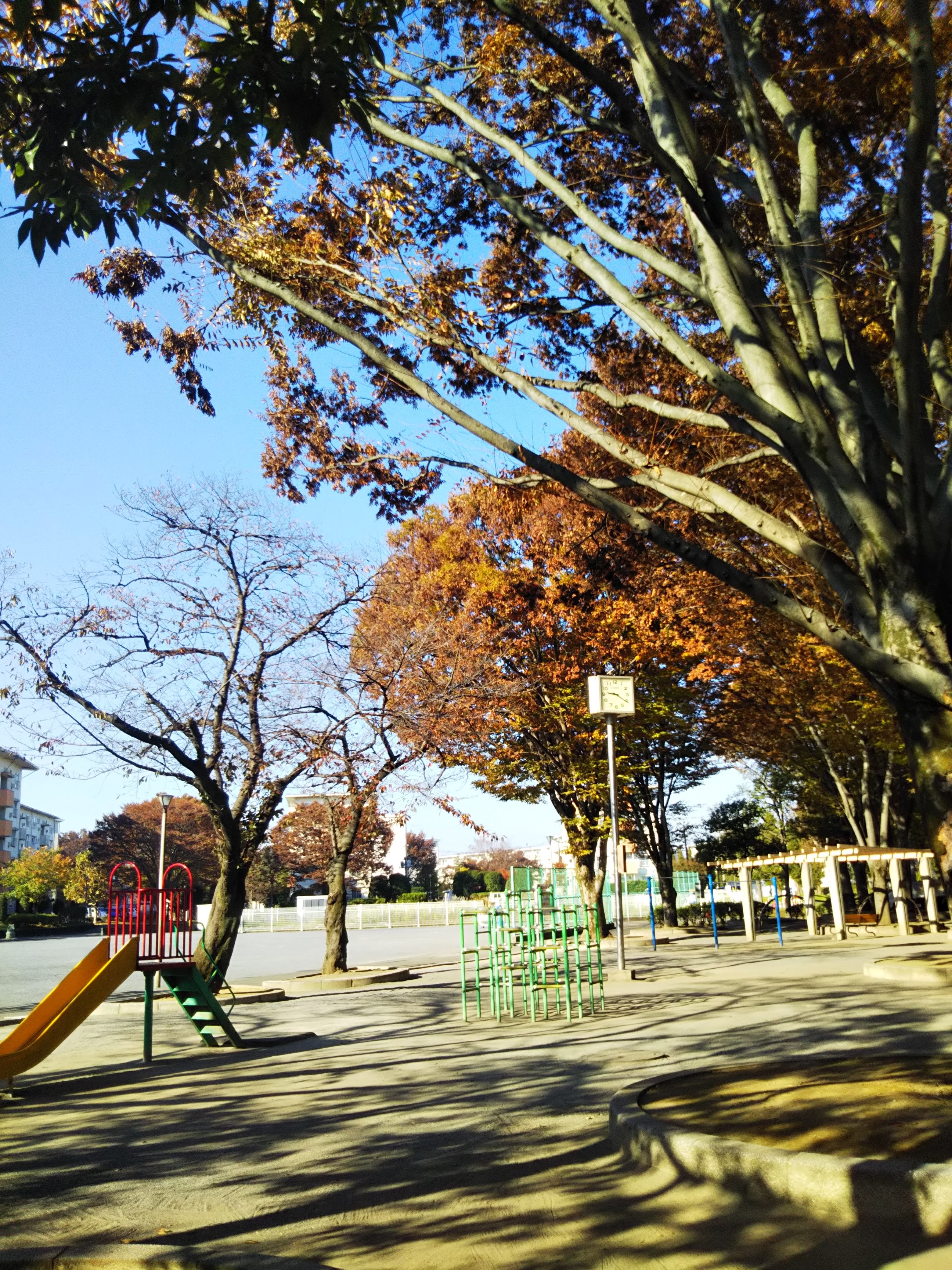 団地内の公園を通ってバス停に向かう途中の公園で、ジャージ姿の若い父親とヨチヨチ歩きの乳児がいました。