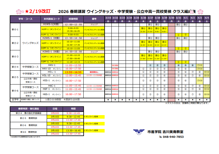 | 小学生・中学生 | 春期講習 |