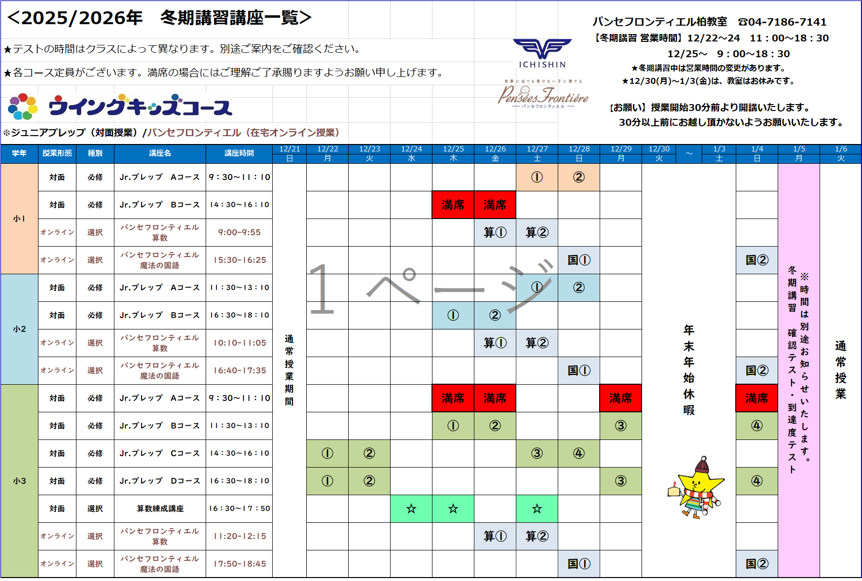 小1・小2・小3対象 毎年大好評の冬期講習のお申込みがスタート!