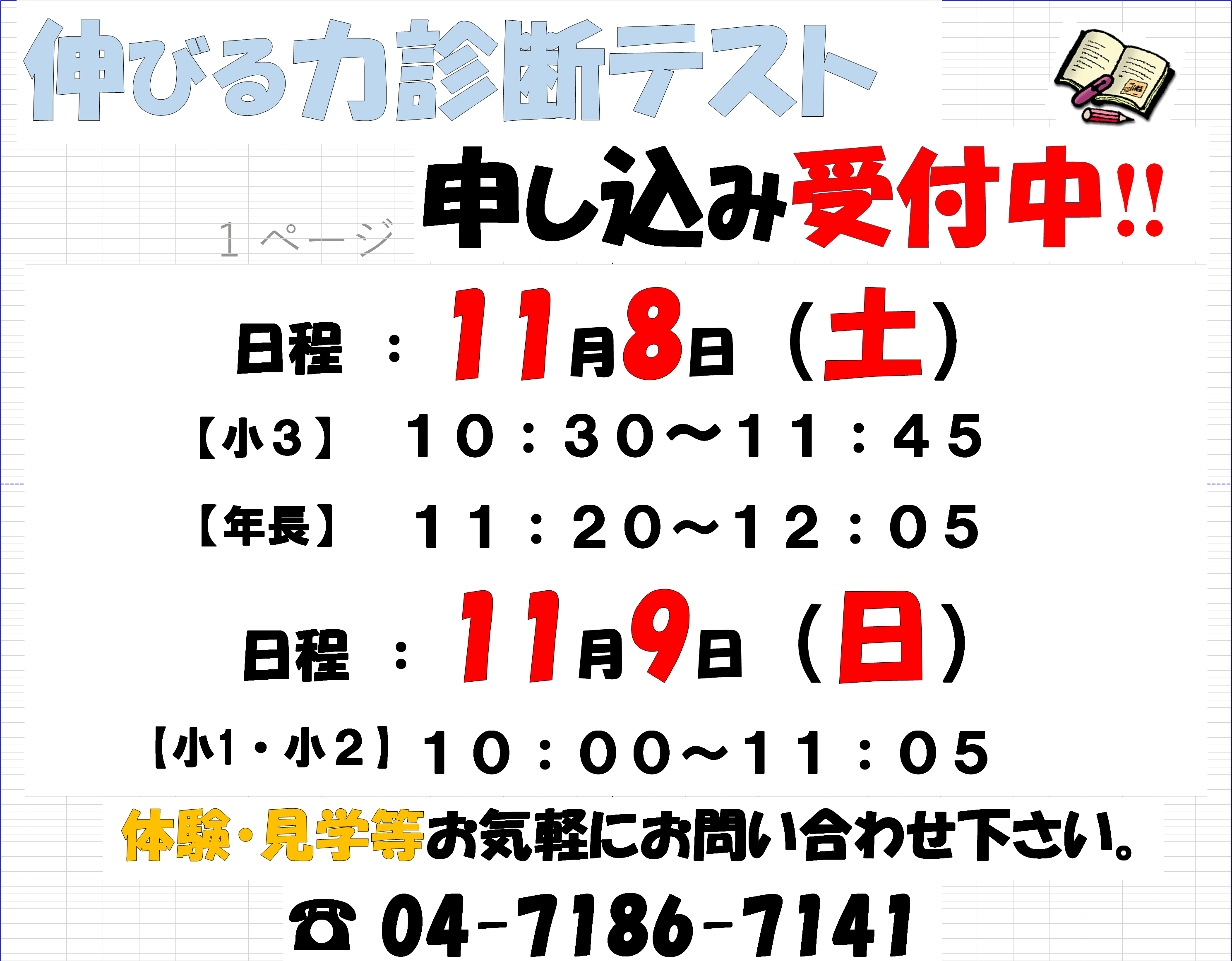 | 11/8(土)・11/9(日) 伸びる力診断テストのご案内 | |