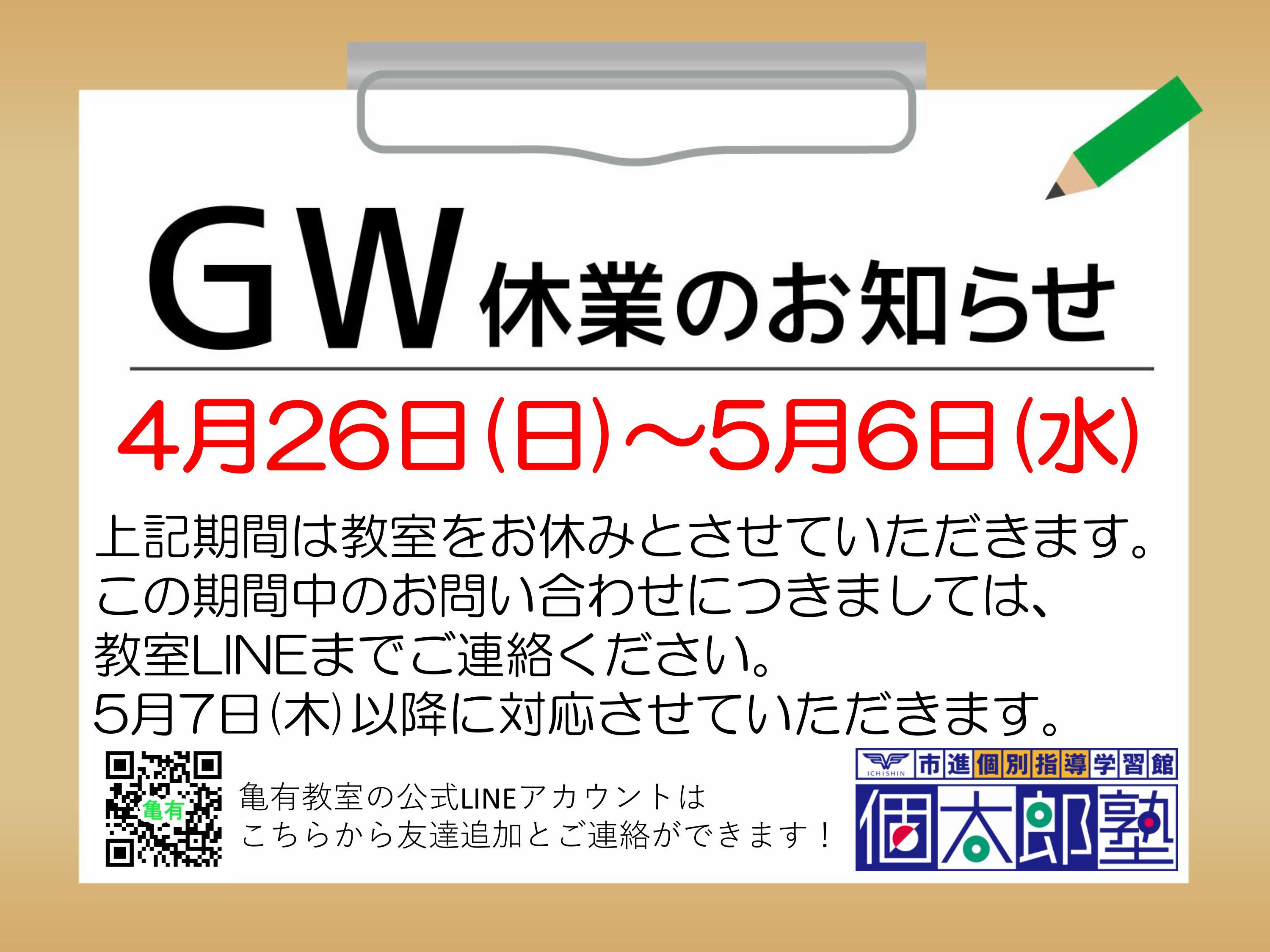下記期間はゴールデンウィークのため閉室となります。