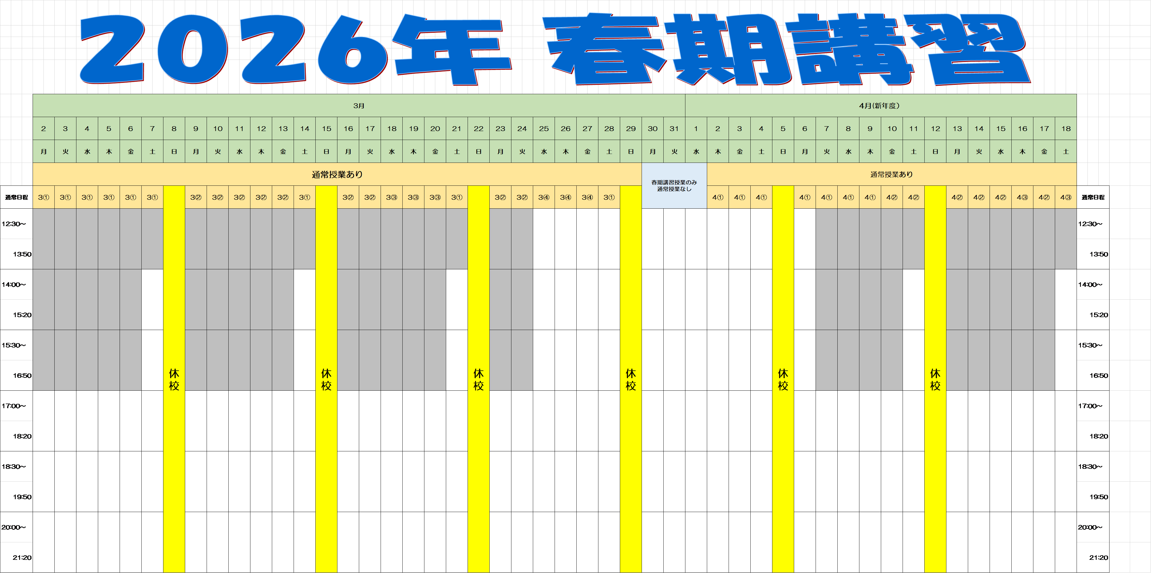 | 春期講習2026 | 春期講習2026 日程表 | お得なキャンペーンの情報」 |