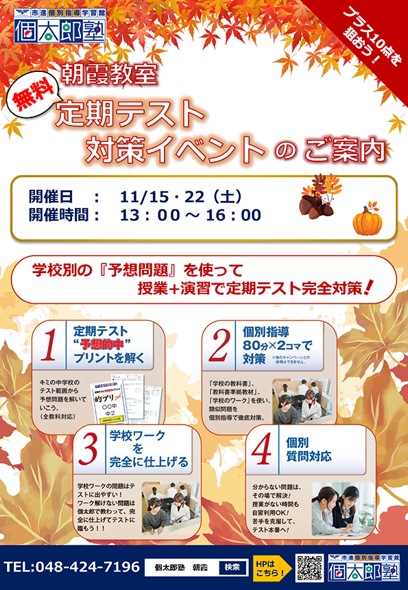 予備校の緊張感もそのままに、本格派の講師陣の熱血指導を個別に受けられる!遠くの予備校まで行かなくても、朝霞で本格的な受験指導!