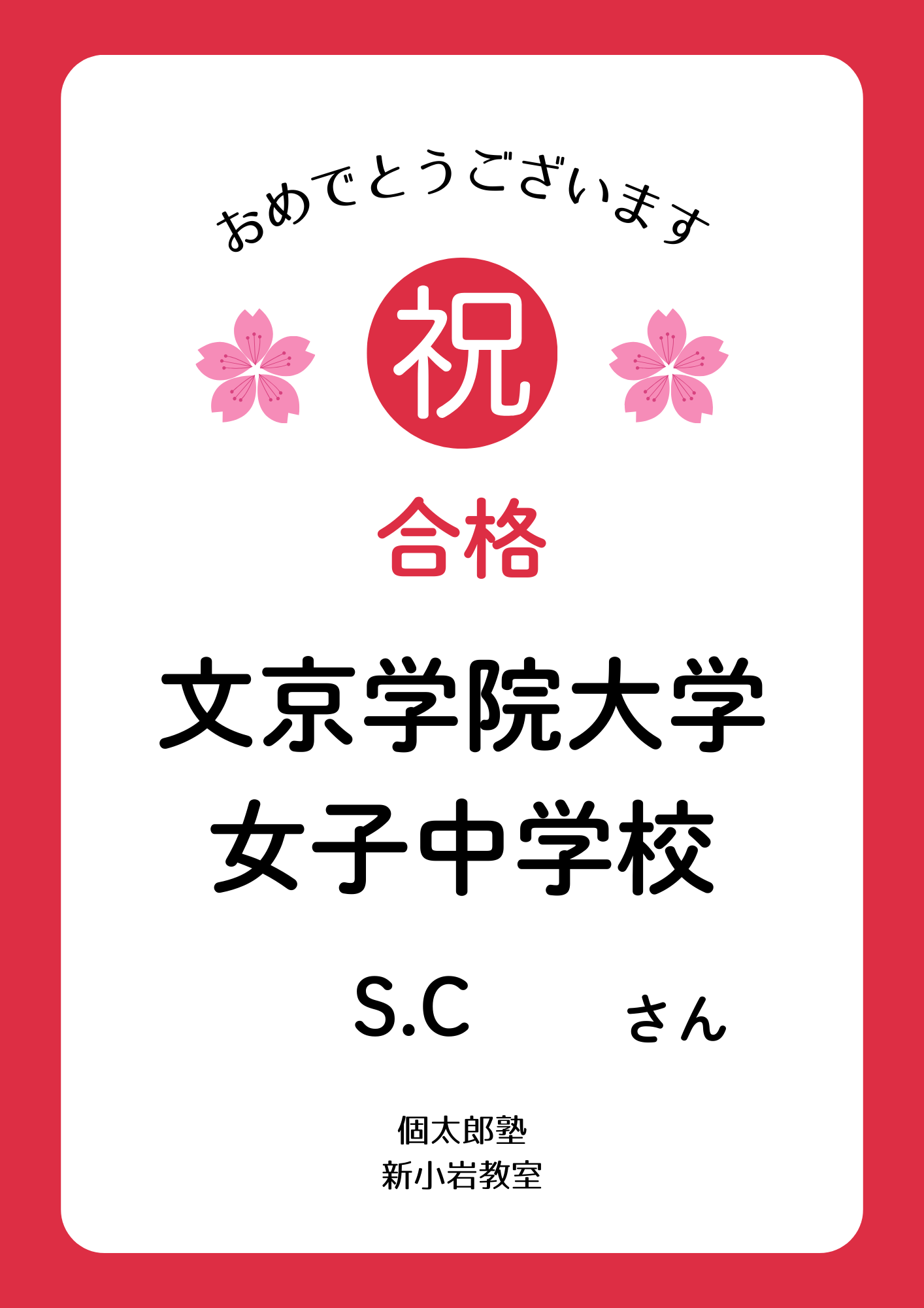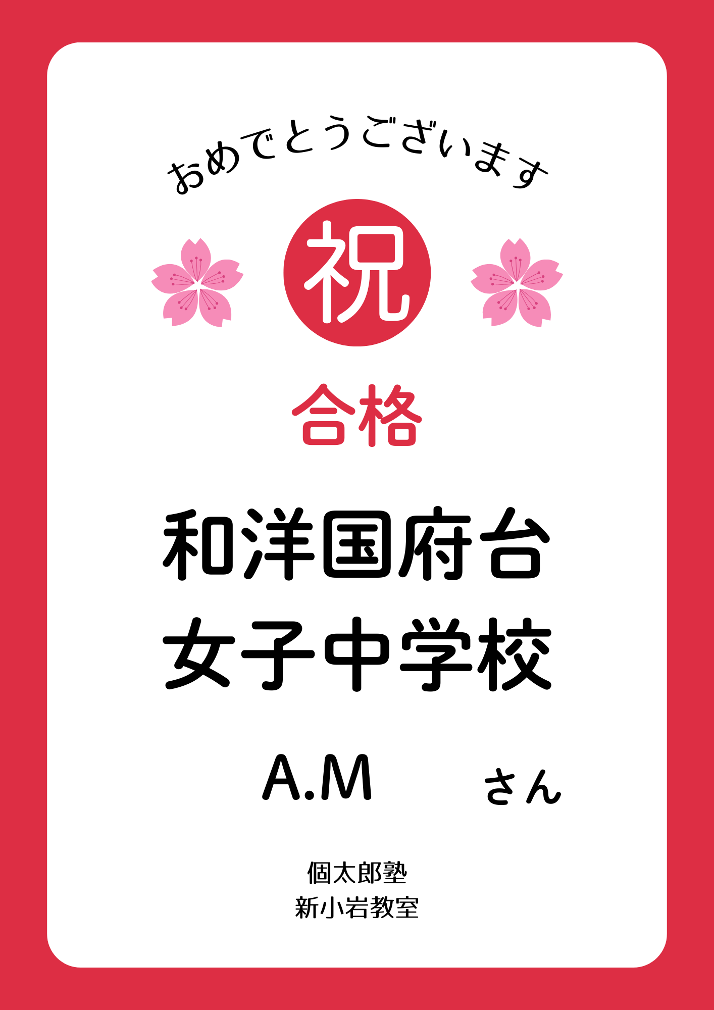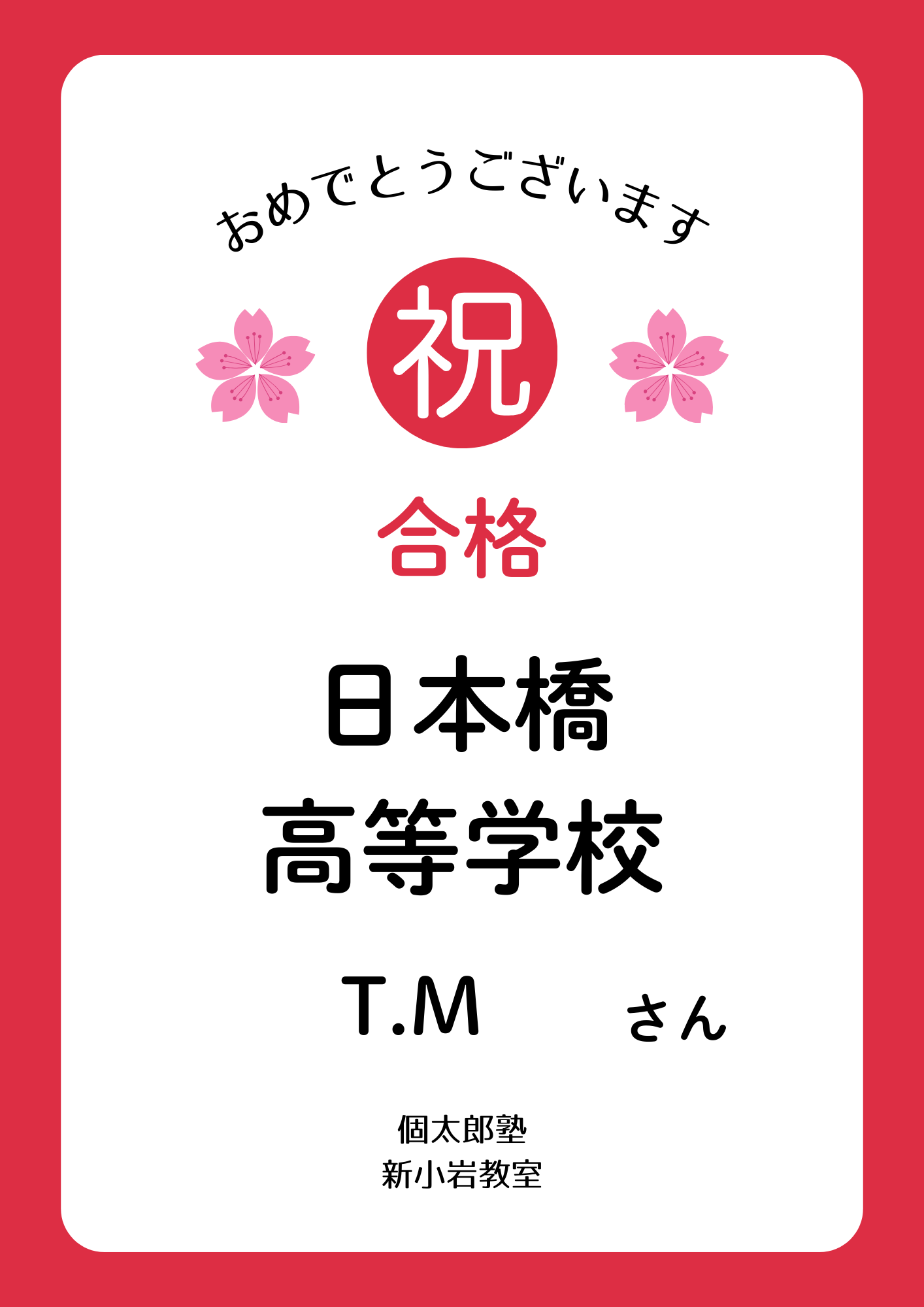 | 私立高校合格おめでとう② | 都立高校合格おめでとう① | 私立高校合格おめでとう① |