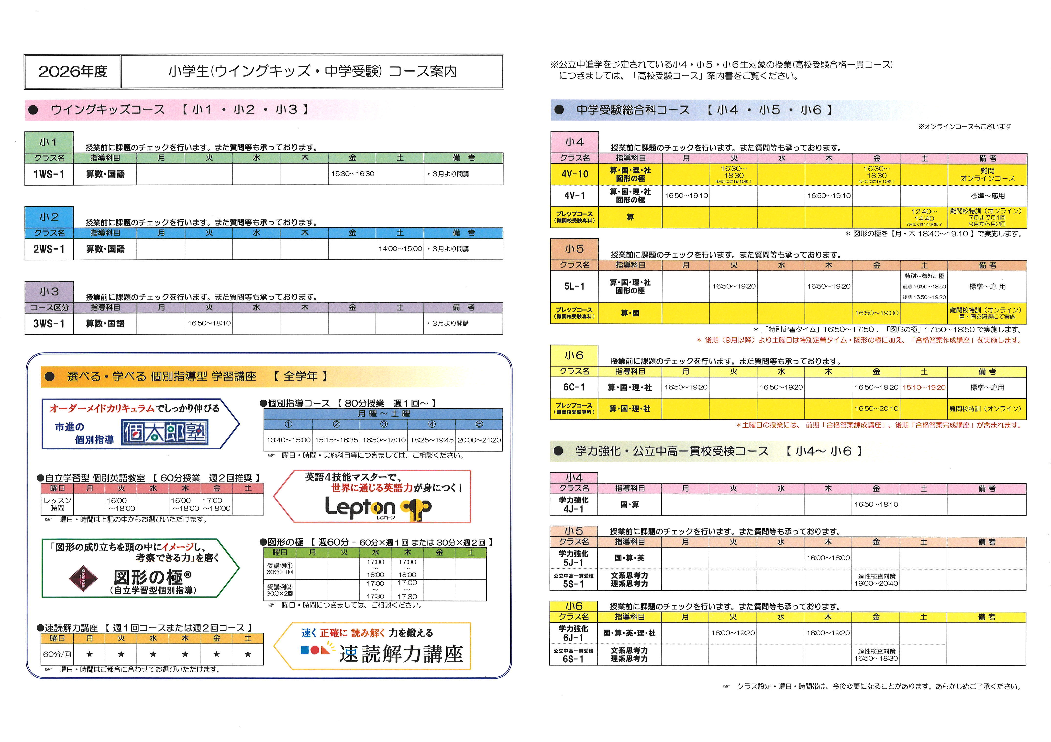 | 【旗の台教室】2026年度 小学部・中学部クラス編成表 | |